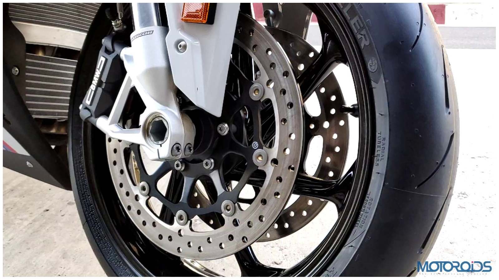 The newly developed suspension has not only enhanced the riding dynamics but has also reduced the weight of the current model when compared to its predecessor. The new S1000 RR features a Flex Frame which is the optimum interplay between the frame design and the engine as a load-bearing element. It improves the aerodynamics of the motorcycle and helps maintain a lower centre of mass. The new layout of the mainframe has a leaner fuel tank and the seating area has been trimmed further for improved support and knee grip. The DDC (Dynamic Damping Control) swings into action within milliseconds and is available for the Pro and M Sport Pro variant only. The 120/70 ZR 17-inch front and 200/55 ZR 17-inch rear Metzeler tyres also play an important role in taming this bike’s enormous power output and keeping it stuck to the track at all times. The wind deflector is another positive and practical feature on the bike, as it deflects the wind with ease and improves the ride quality and aerodynamics of the bike to some extent.