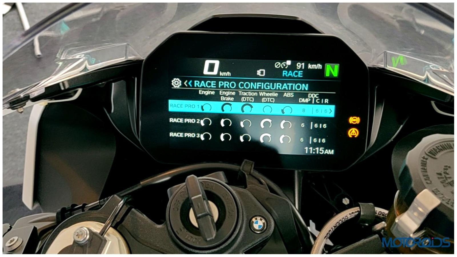 The different riding modes enable individual adaptation of the most diverse control functions such as Engine (throttle), Engine Braking, Traction Control, Wheelie-Control, ABS and ABS Pro to suit the rider’s own skill level and riding style. Another feature that comes with the ‘Pro Modes’ is Launch Control for a perfect race start. The base variant also misses out on the tyre pressure control system, while the Pro and M Sport Pro variants get it as standard.