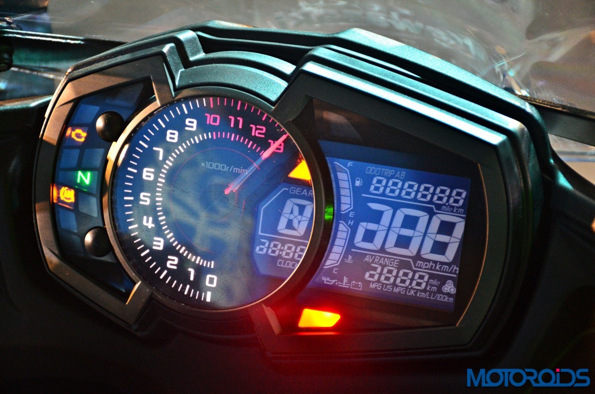 The instrument console has been redesigned too and this one looks a lot better than the previous model. This one features an analogue tachometer in the centre along with a digital gear position indicator, a gear shift indicator light and a digital clock. To the right, is a digital console which displays fuel gauge, engine oil temperature indicator, odometer, speedometer, trip meters, average range and an eco-riding indicator. To the left are all the tell-tale indicators along with the “Mode” and “Set” buttons.