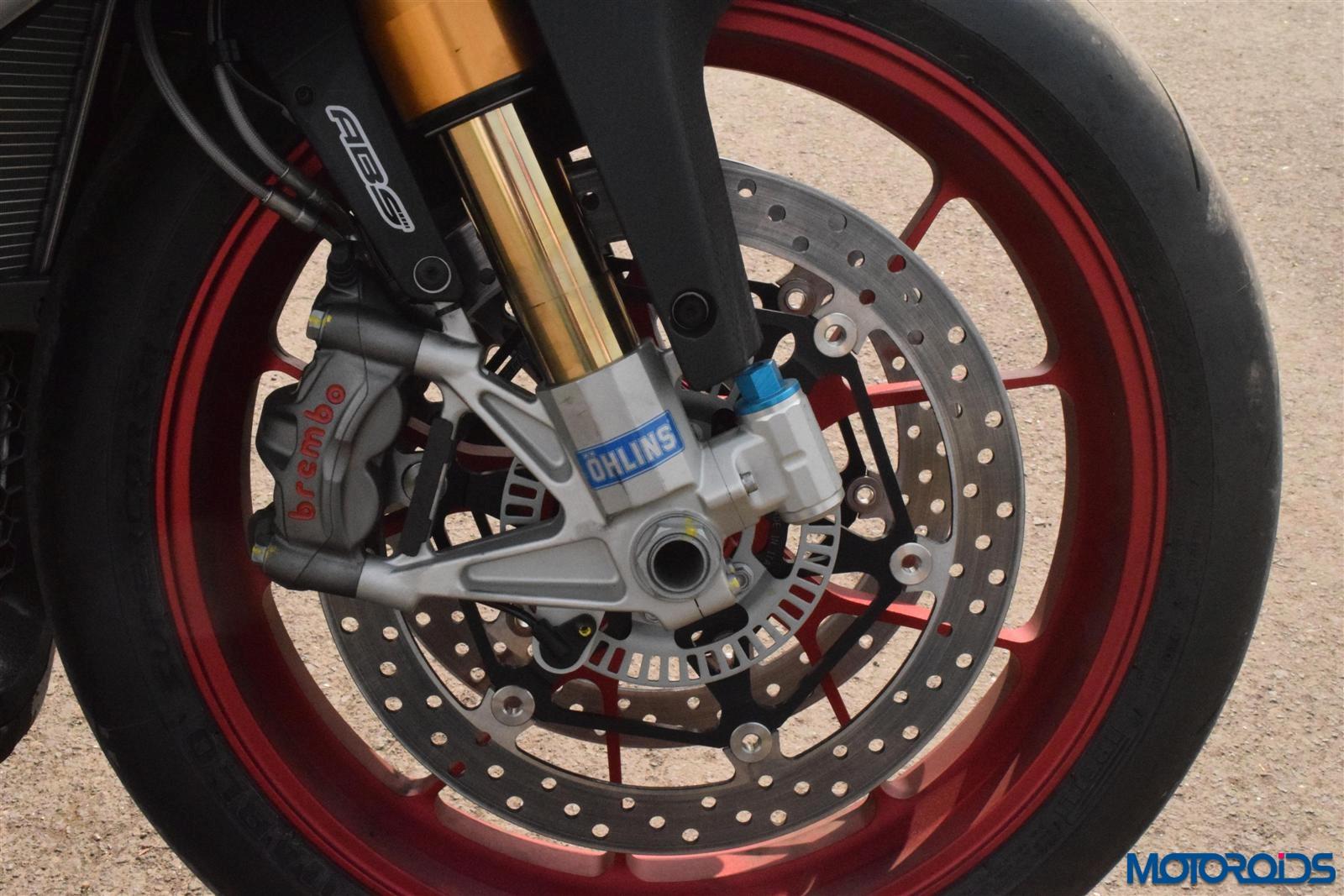 Twin 320-mm diameter floating stainless steel disc with 4 piston Brembo M430 monobloc radial calipers.