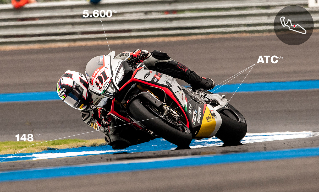 The Aprilia patented three step Wheelie Detection System kicks in to cut power softly than a harsh chop for acceleration control.