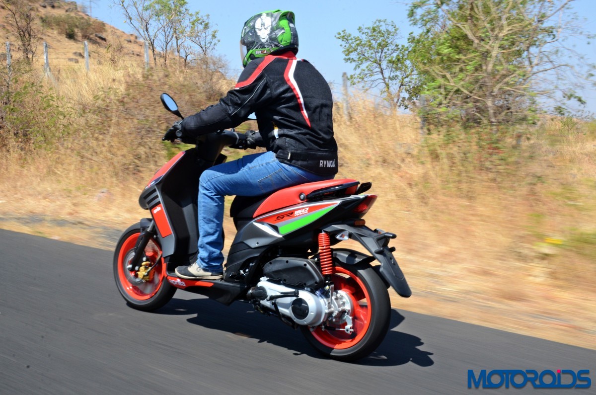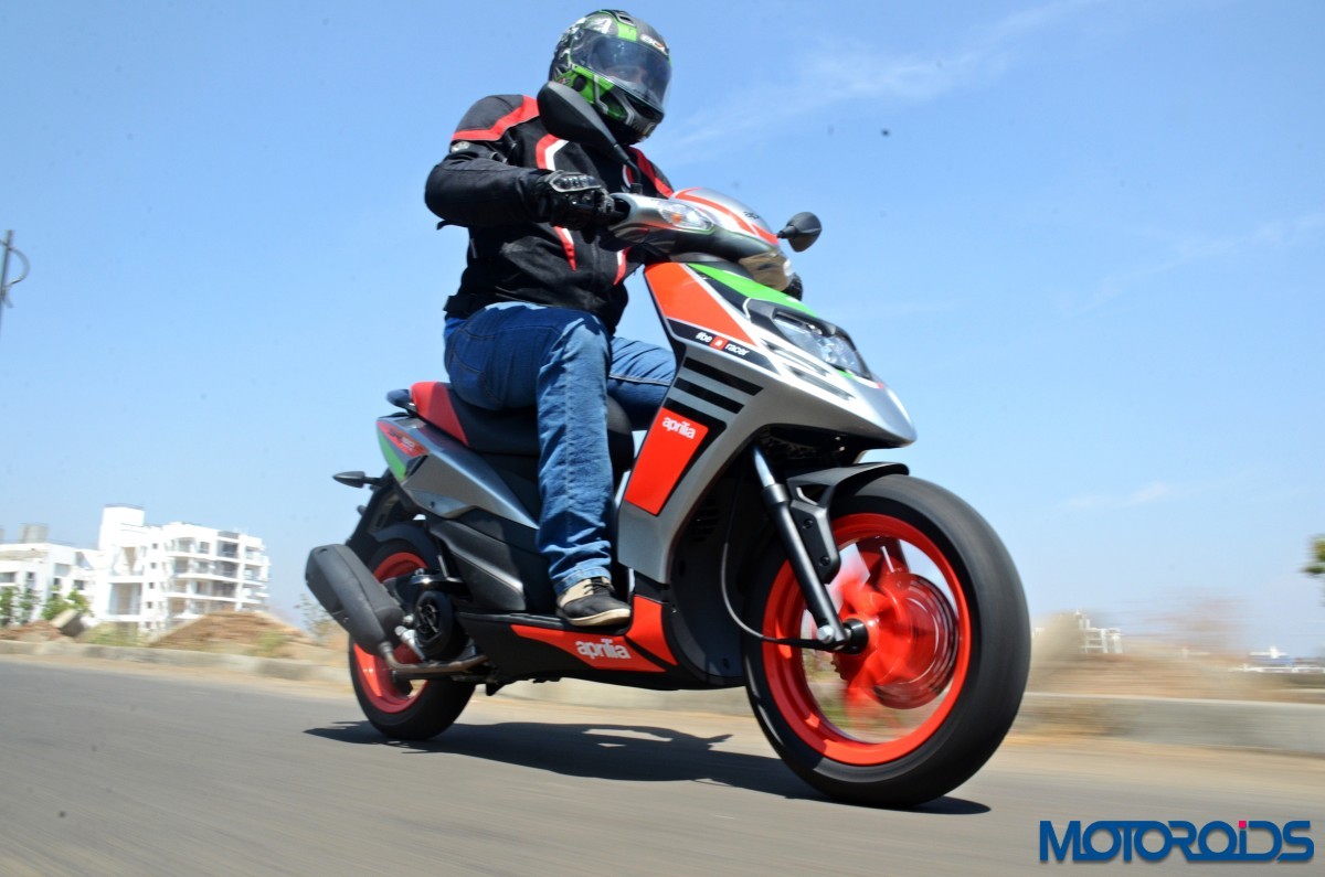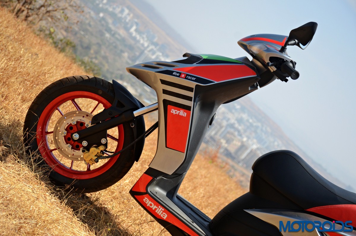 Let’s get the numbers out of the way before we talk about that new tune to the gearbox. The SR150 Race draws power from a 154.8 cc, single-cylinder engine which is tuned to produce 10.4 HP @ 6750 rpm and a maximum torque of 11.4 NM @ 5000 rpm. While the performance numbers are same as the standard SR150, the folks at Aprilia have re-tuned the CVT Gearbox for better low-end acceleration which translates into more pep and punch off the line – something every city rider seeks from his/her automatic transmission scooter.
