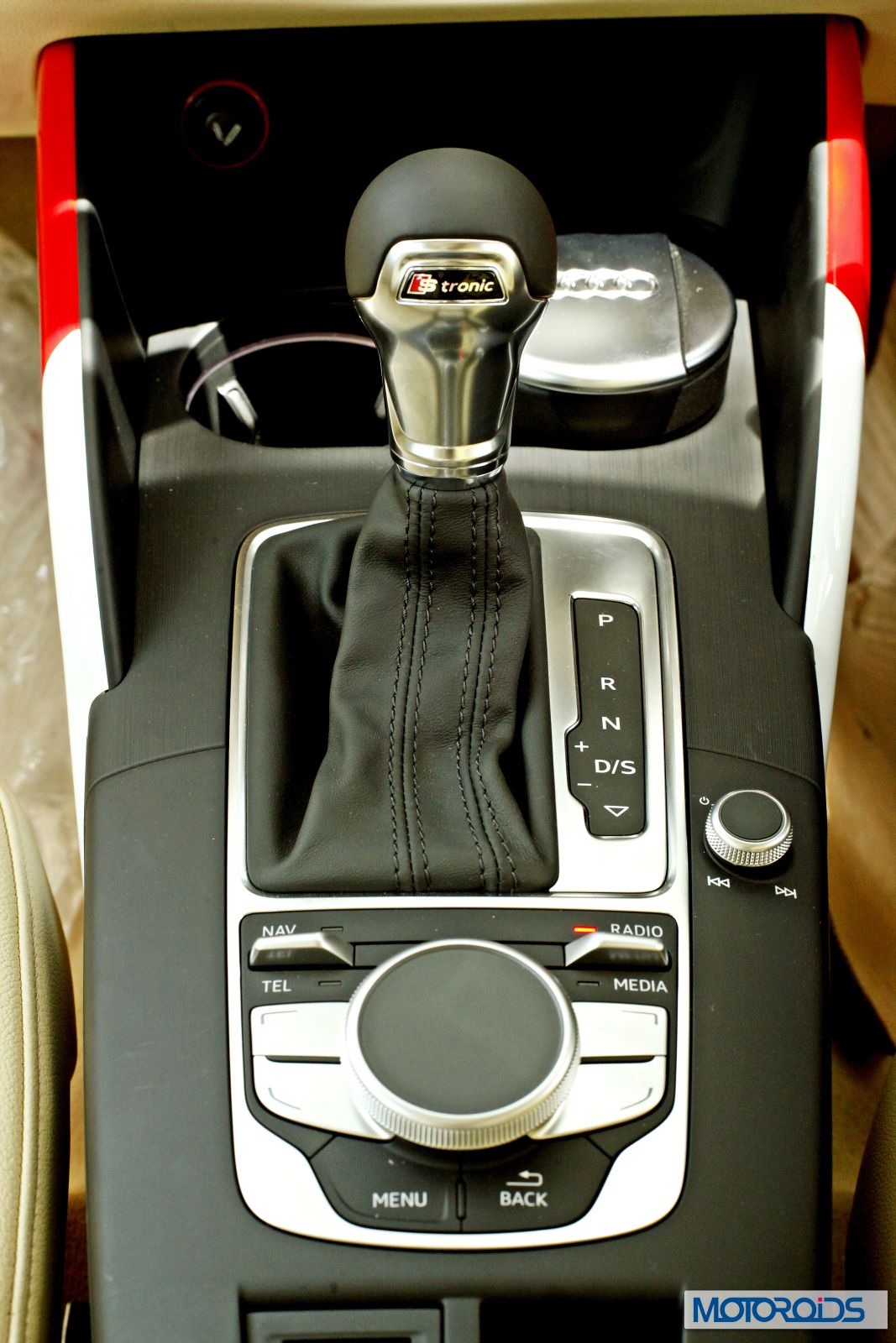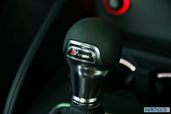 You can toggle between Drive and Sport modes by flicking the sexily styled, leather wrapped spherical ‘S-Tronic’ drive selector downwards. Flicking the stick to the left would put you in manual mode.
