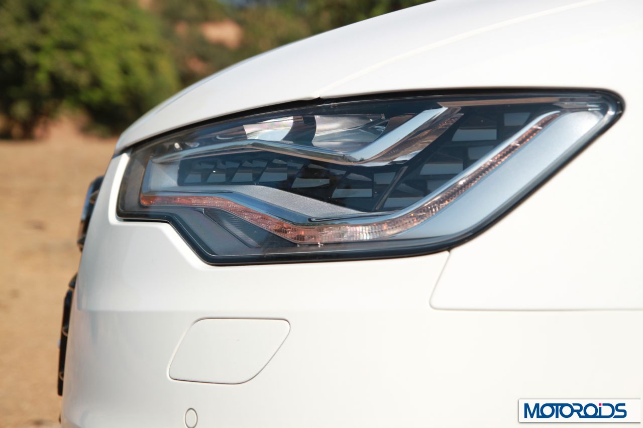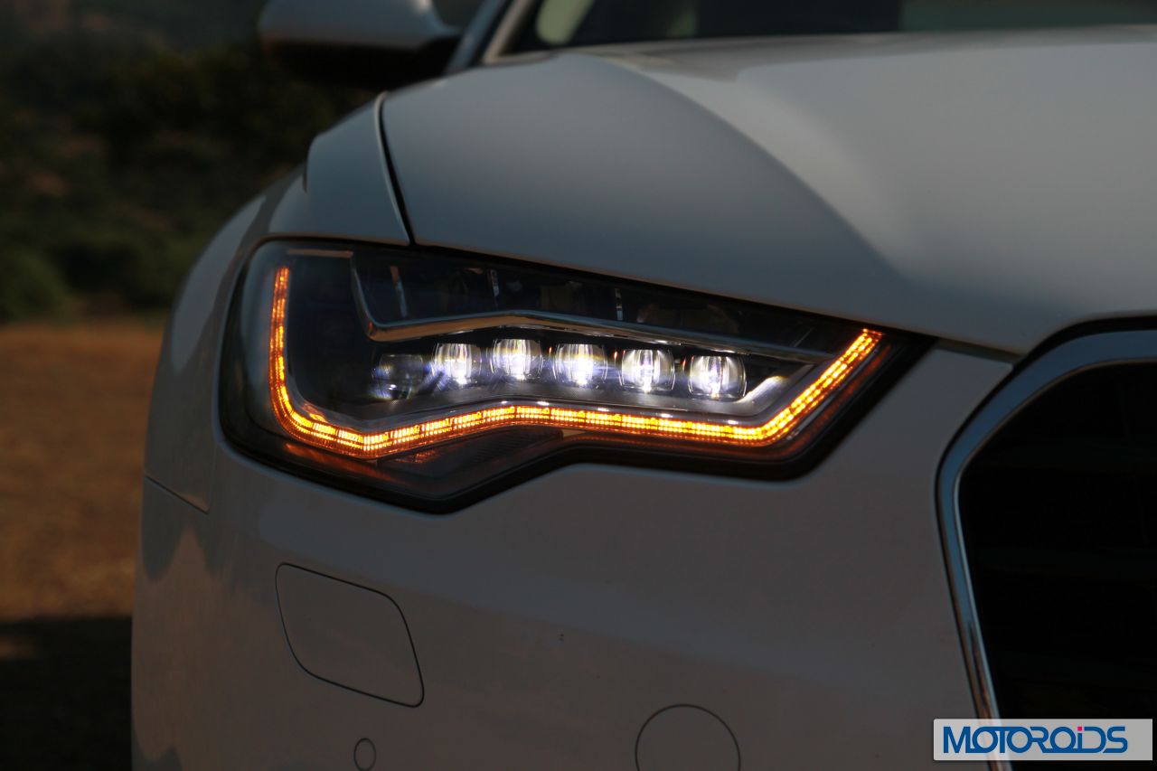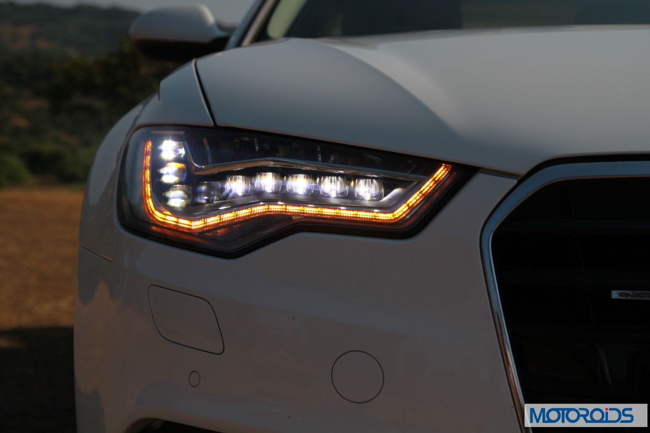 The A6, in its newest avatar draws from the A8. One look at those menacing eyes and the relation is evident. The instantly recognizable Audi Goatee is the most prominent characteristic of the A6’s intimidating face. The big radiator grille is flanked by two aggressively finned faux intakes on the lower end, and by a pair of sharp, angular and extremely distinctive headlamps on the upper end. The bonnet has two creases to add tension and tone to all that mass. The LED lamps that our test model came outfitted with is an absolute must if turning every head towards you is what you want to do with your car. The A6’s face, even with all its daunting traits, somehow manages to pull off the unfeasible by staying this side of the boundary between sophistication and kitsch.