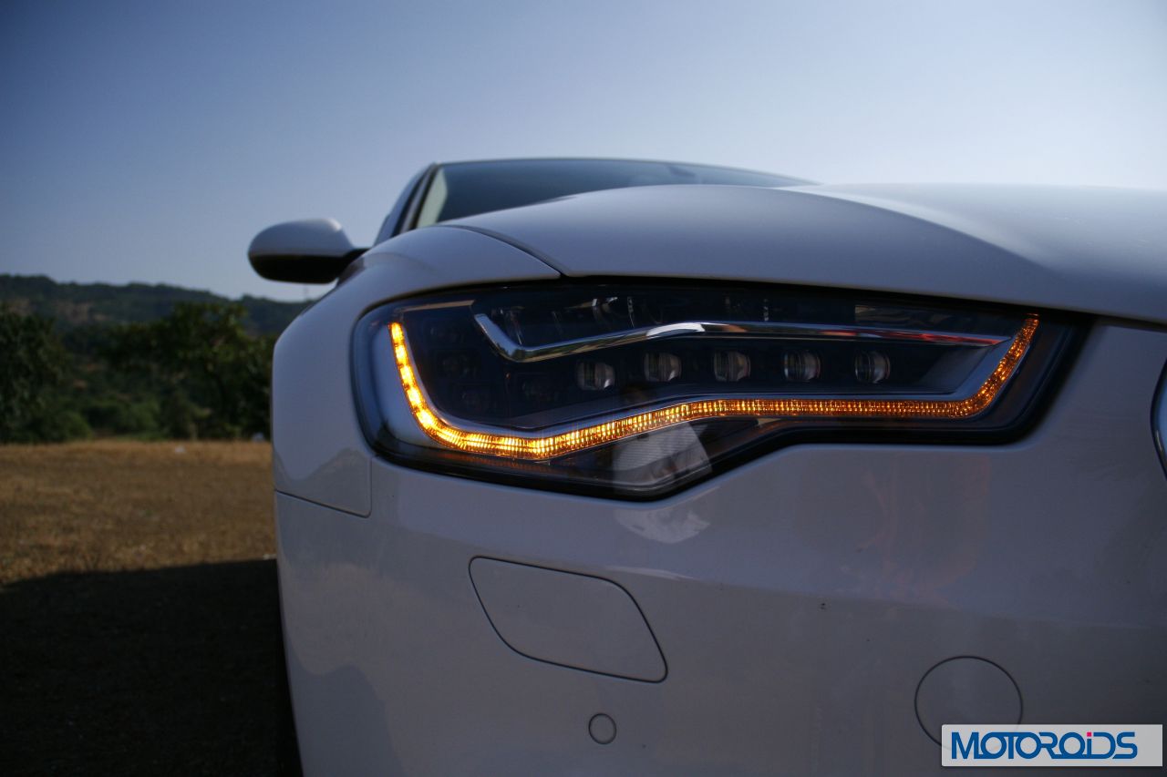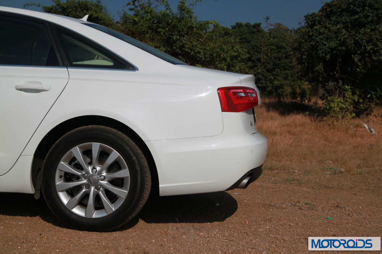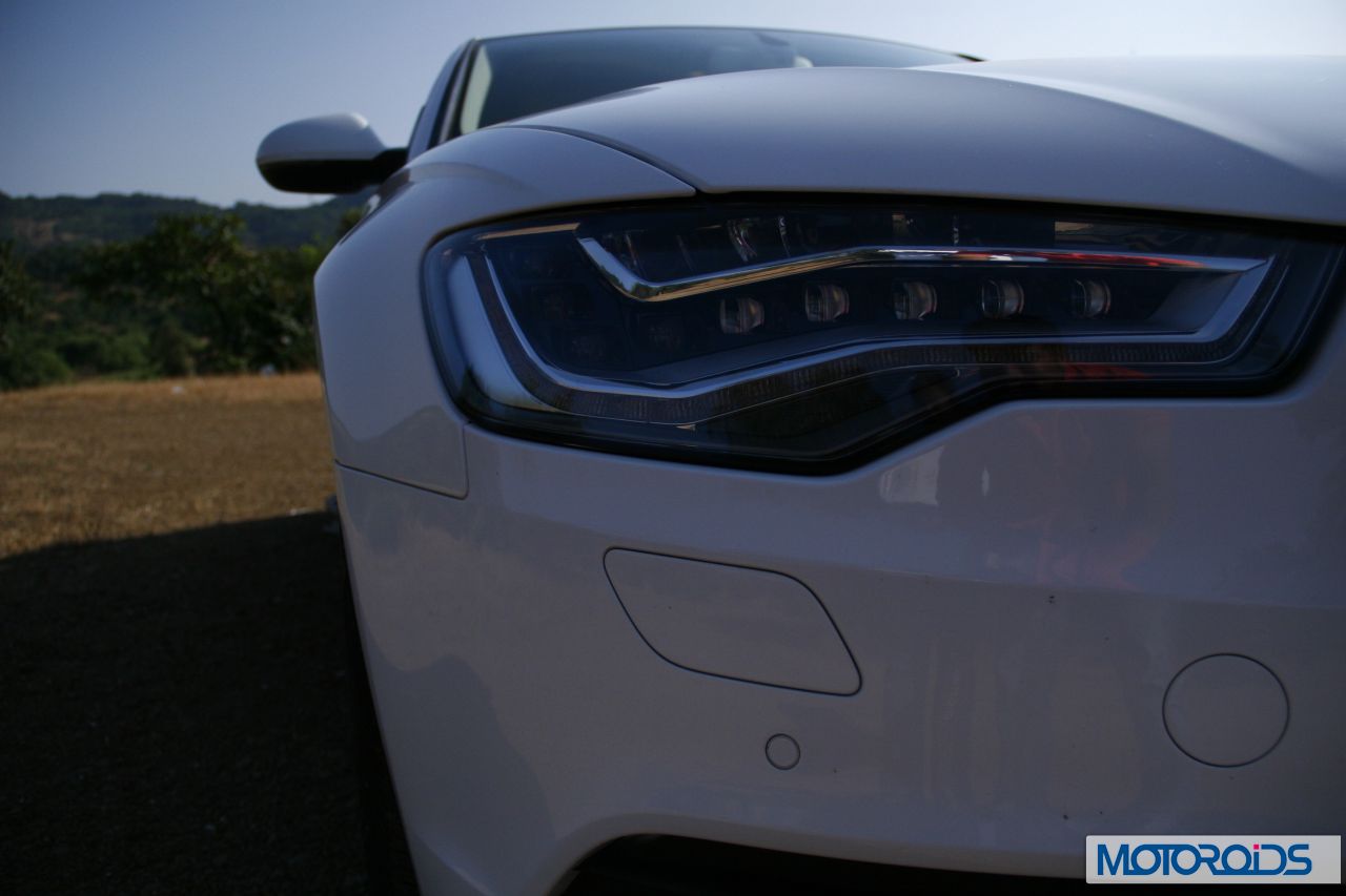 The A6, in its newest avatar draws from the A8. One look at those menacing eyes and the relation is evident. The instantly recognizable Audi Goatee is the most prominent characteristic of the A6’s intimidating face. The big radiator grille is flanked by two aggressively finned faux intakes on the lower end, and by a pair of sharp, angular and extremely distinctive headlamps on the upper end. The bonnet has two creases to add tension and tone to all that mass. The LED lamps that our test model came outfitted with is an absolute must if turning every head towards you is what you want to do with your car. The A6’s face, even with all its daunting traits, somehow manages to pull off the unfeasible by staying this side of the boundary between sophistication and kitsch.