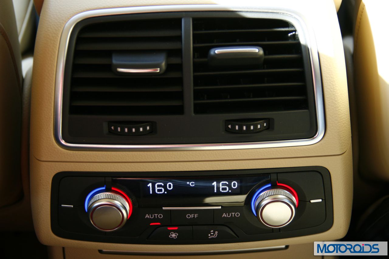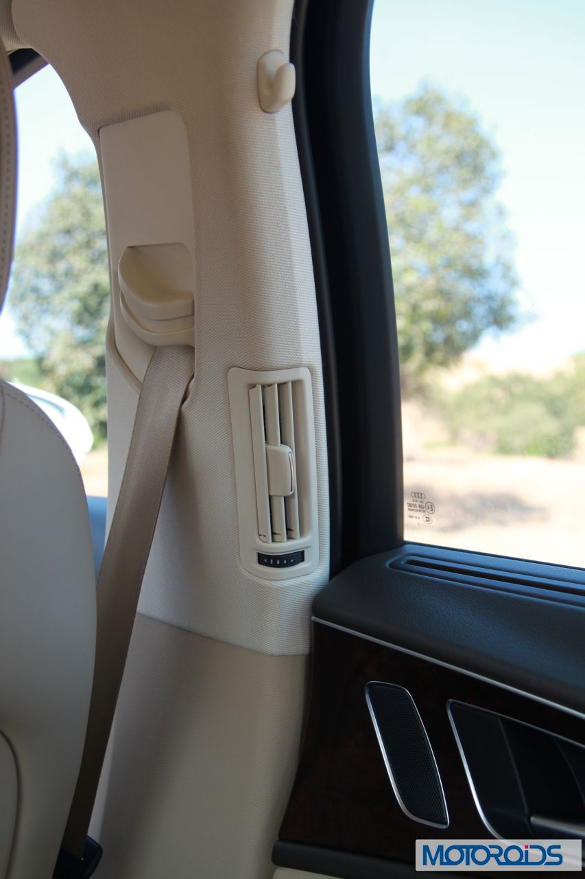With four zone climate control, both the back benchers get to have their own individual settings for the A/C. We say ‘both’ as the rear A/C vents protrude too much into the back area. Along with the wide transmission tunnel it becomes extremely difficult to accommodate a third occupant on the A6’s back seat. There is more than enough leg and knee room for two occupants though, and thanks to the composed ride, and quiet cabin, the A6’s back seat makes for one of the most tranquil spaces on wheels.