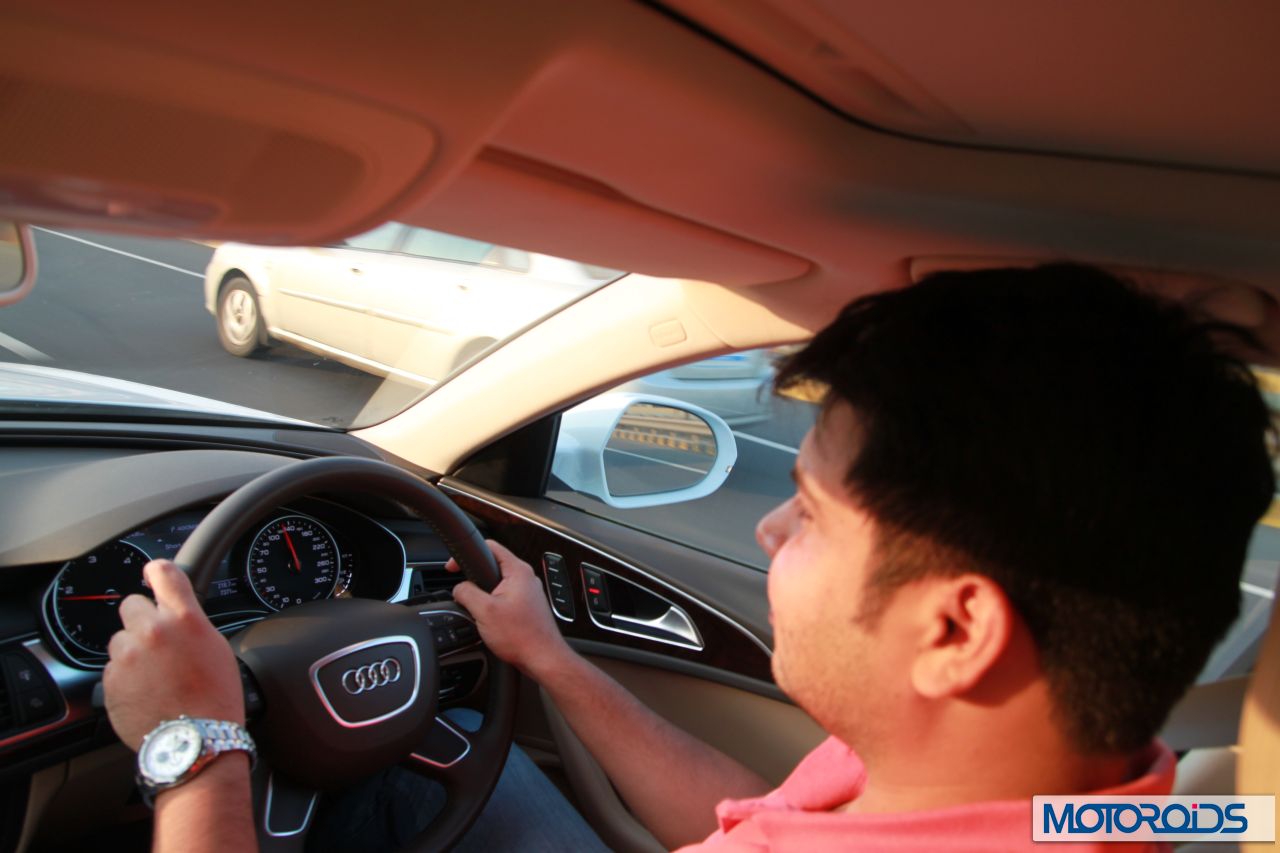 The A6 treads its path with authority. From behind the steering wheel, the A6 feels absolutely substantial, and over engineered to take care of all of those 500 Newton meters of twisting force. In a straight line, speeds upto 220km/h feel absolutely safe, after which a wee bit of nervousness begins creeping in. Changing lanes can be done with confidence, even at speeds nudging a double ton.