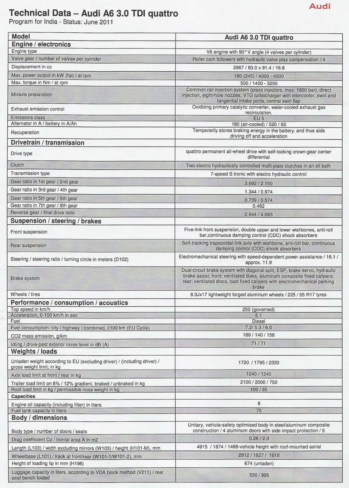 The new A6, in its seventh generation model has been designed to present the biggest challenge to the E-class and 5-series. We review the top of the line diesel 3.0 TDI V6 variant of the executive sedan to ascertain how much it has succeeded in its endeavor.