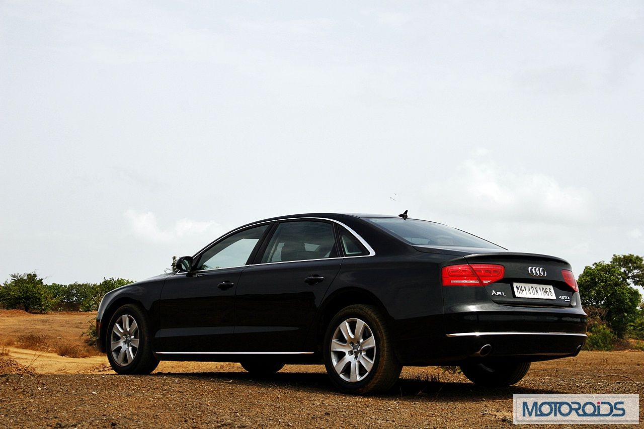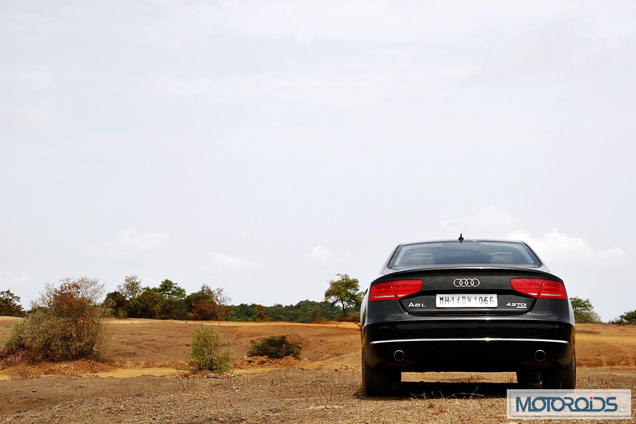 A strong beltline running across the length, an accentuation on the doors slightly above the sills and flared arches. Things have been kept rather simple in profile. Two chiseled lines on the boot flanks, dual exhausts, an integrated boot lid spoiler and a horizontal line sending the license plate into a recess form the basis of the theme at the rear.The angular tail-lamps on the A8 are quite distinctive too, and help make the flagship try and stand out.
