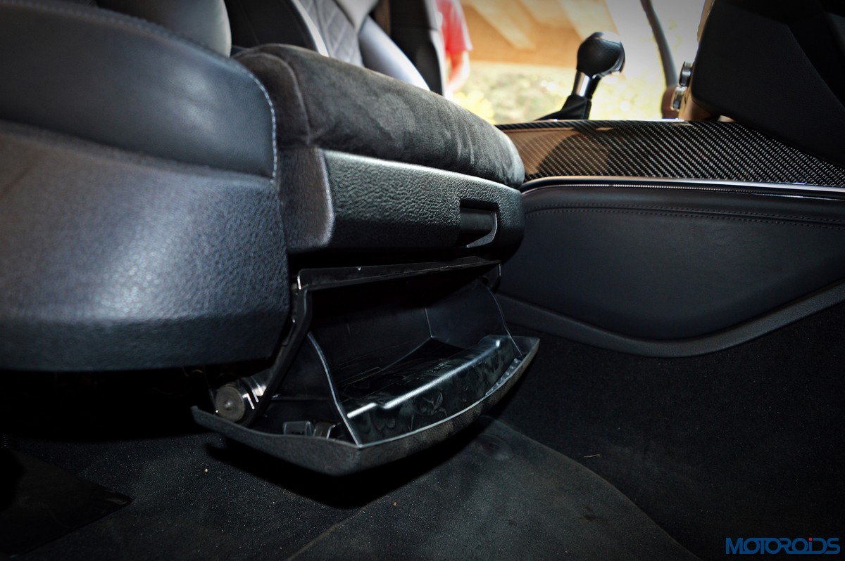 It’s a luxury car after all, so friendly features like 12-way electrically adjustable front seats which are also heated, split-folding rear seats, an electrically adjustable steering column, 4-zone automatic air conditioning with rear vents, cruise control, automatic headlamps, keyless go, head-up display, rain sensing wipers, a panoramic sunroof, an ambient lighting package, and so on. As for interior storage, there are two cupholders in rear armrest, and a luggage net for the massive 1,680 liter boot (with the rear seats folded flat).