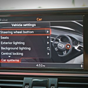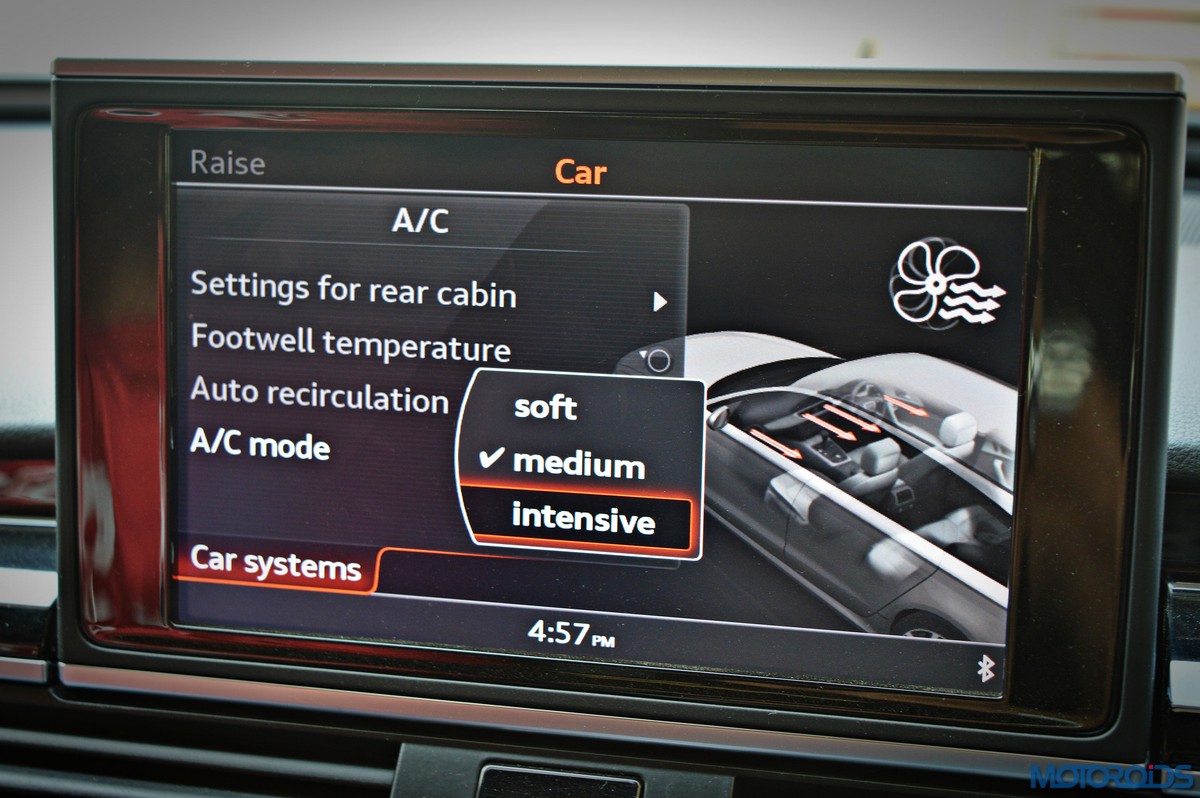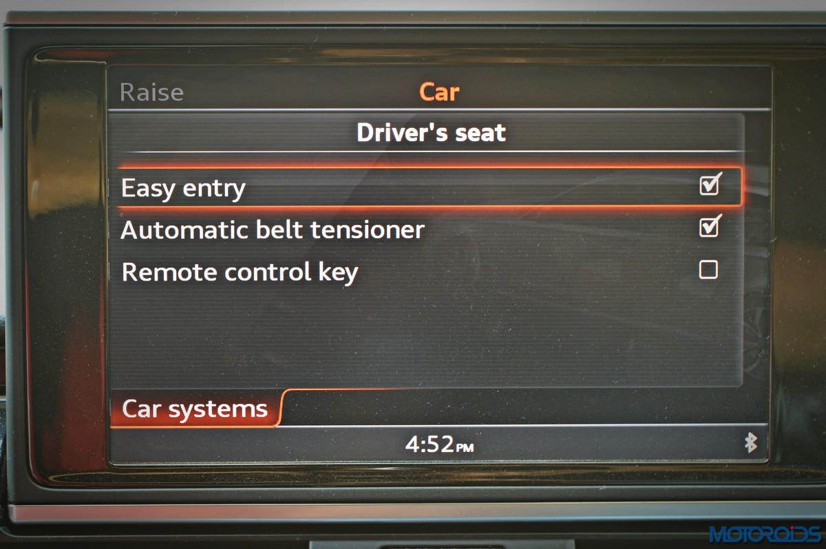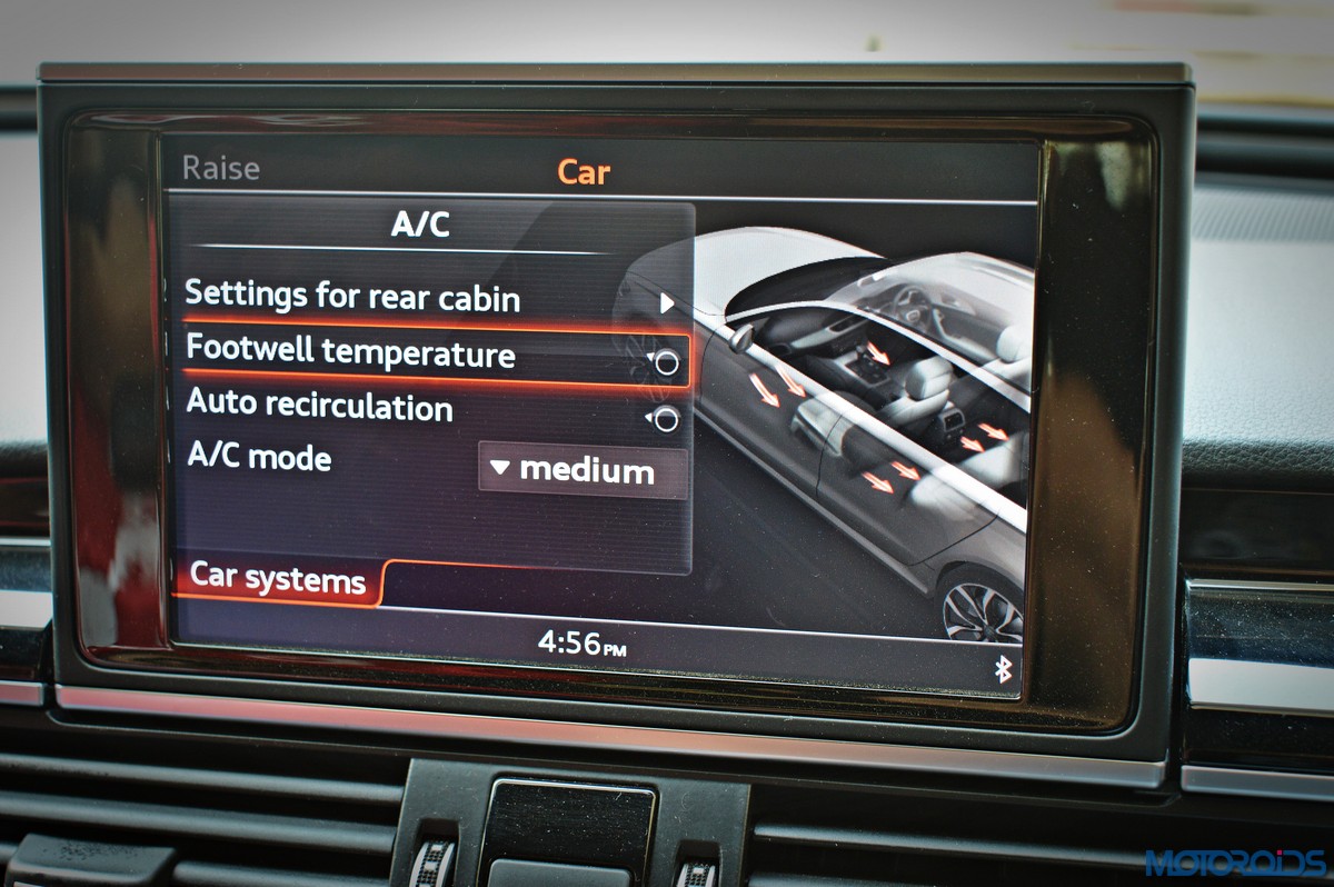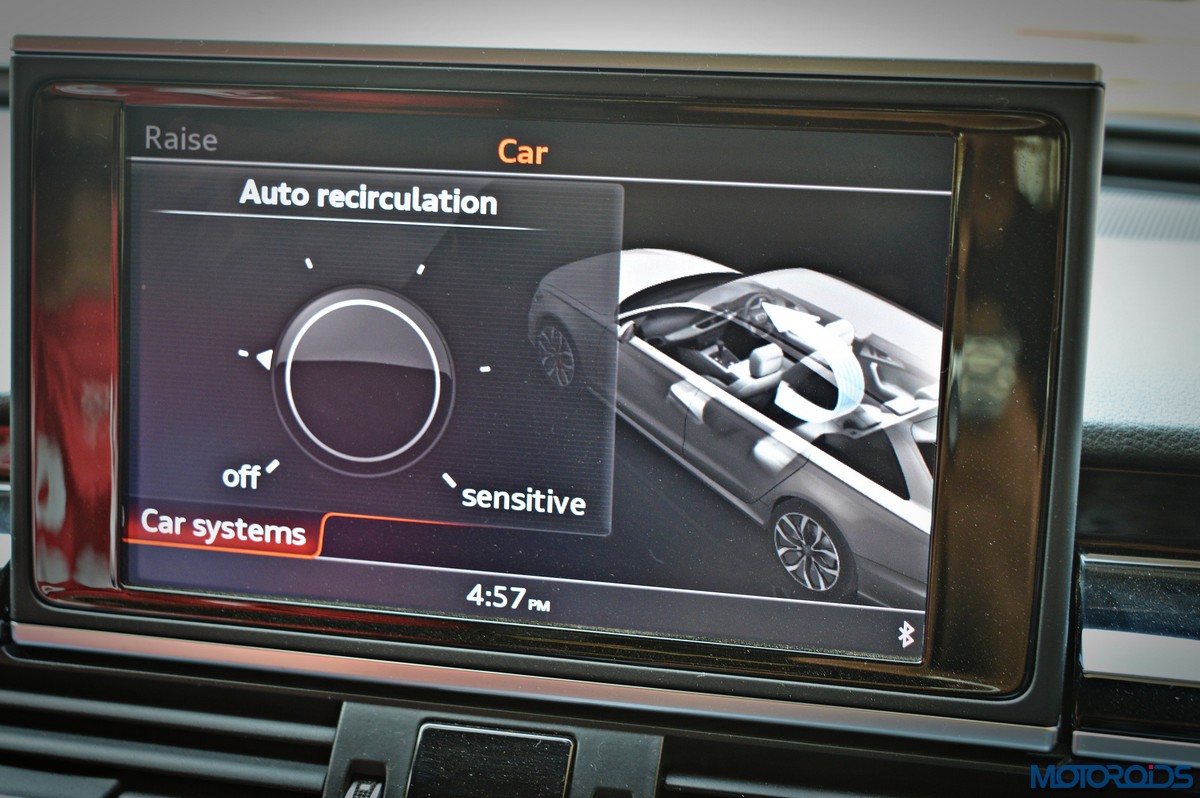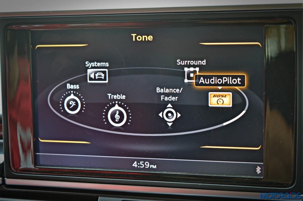 Infotainment duties here are a bit ageing compared to Audi’s current standards, so instead of the fancy (and ingenious) new Virtual Cockpit, there’s a 7-inch screen that pops out of the center console when the beast awakens. Running on MMI, the system features navigation with 3D maps, a touchpad with haptic feedback, Bluetooth connectivity, radio and a Bose surround sound system that’s punchy as hell. You also get an AUX-in socket, two 12V sockets in rear, along with two USB sockets.