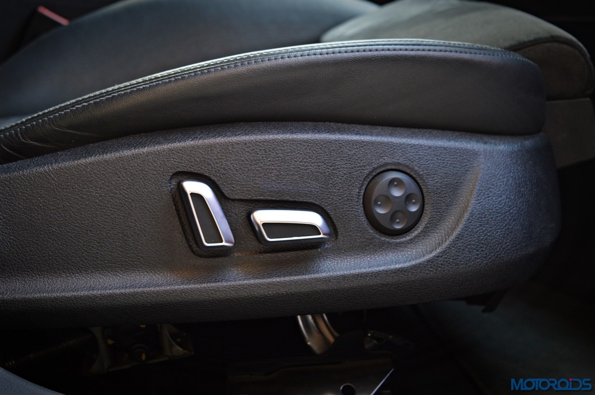 It’s a luxury car after all, so friendly features like 12-way electrically adjustable front seats which are also heated, split-folding rear seats,  an electrically adjustable steering column, 4-zone automatic air conditioning with rear vents, cruise control, automatic headlamps, keyless go, head-up display, rain sensing wipers, a panoramic sunroof, an ambient lighting package, and so on. As for interior storage, there are two cupholders in rear armrest, and a luggage net for the massive 1,680 liter boot (with the rear seats folded flat).
