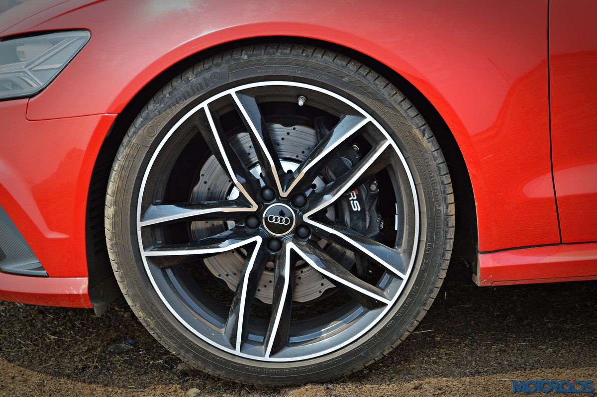 The big, hunkering station wagon, at full tilt, is like a stray meteor slicing through the night skies. However, it needs to stop when the need arises. Massive, internally ventilated brake discs, each measuring 390 mm in diameter and gripped by six-piston calipers manage to haul down the devilish wagon with eye-popping severity. The brake discs also have a weight-saving wave design, which claim to shave off nearly three kilograms compared with a brake system with conventional discs. Audi also offers optional, 420 mm carbon fiber-ceramic brake discs, which all together reduce weight by an additional ten kilograms. However, under braking or acceleration over longitudinal undulations on the road, the RS6 twitches and tramlines, as the wide, 285-section, low-profile rubber struggles to maintain the vehicle’s composure.