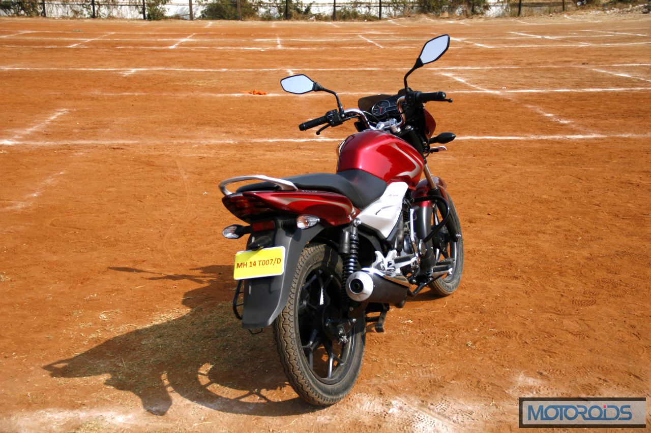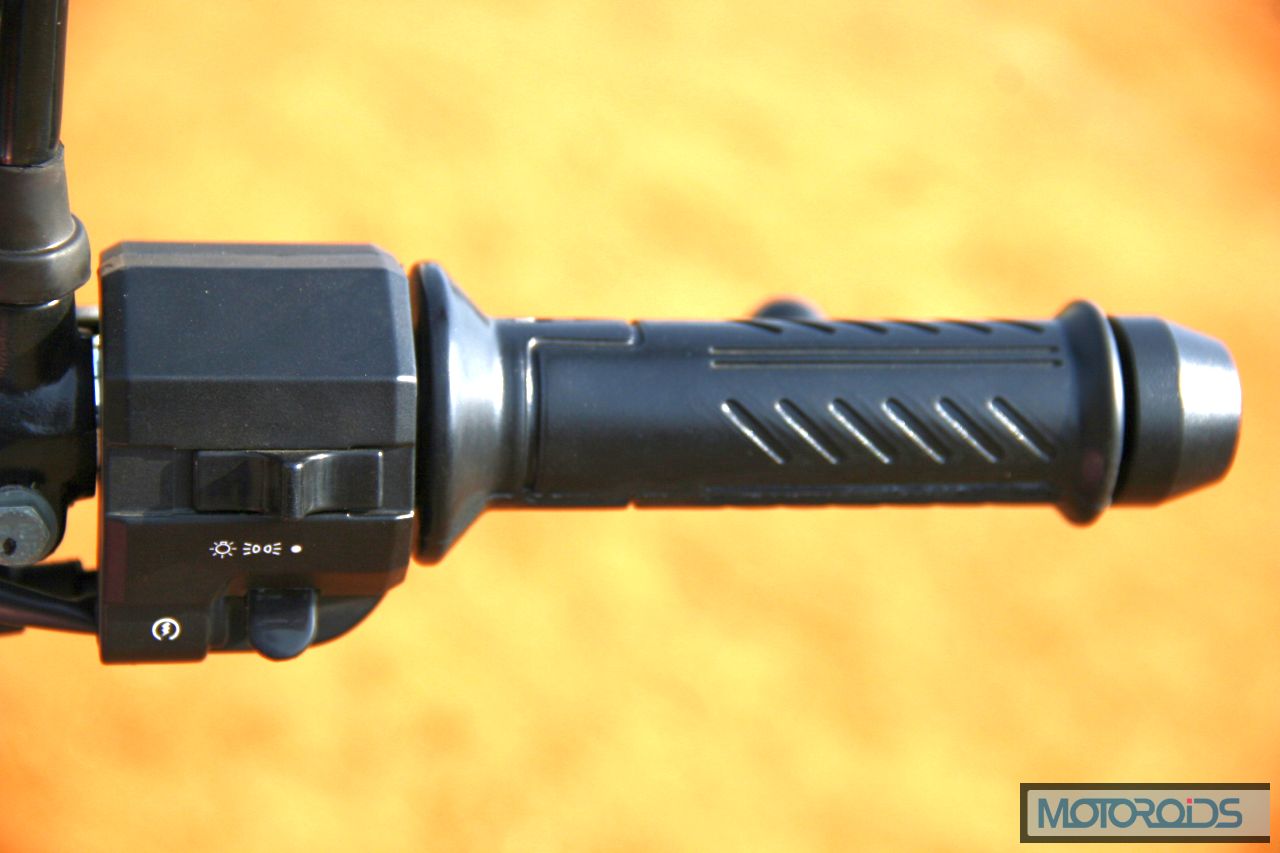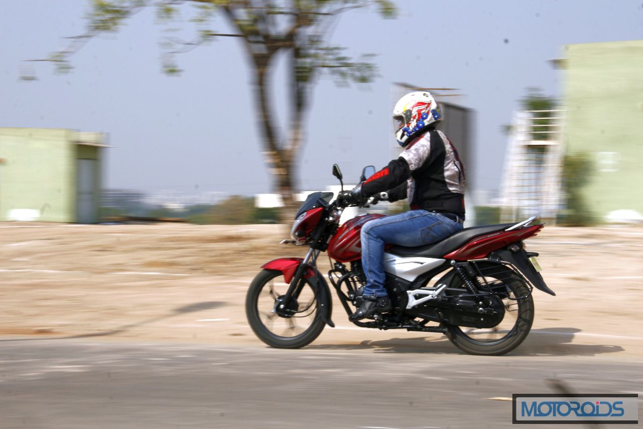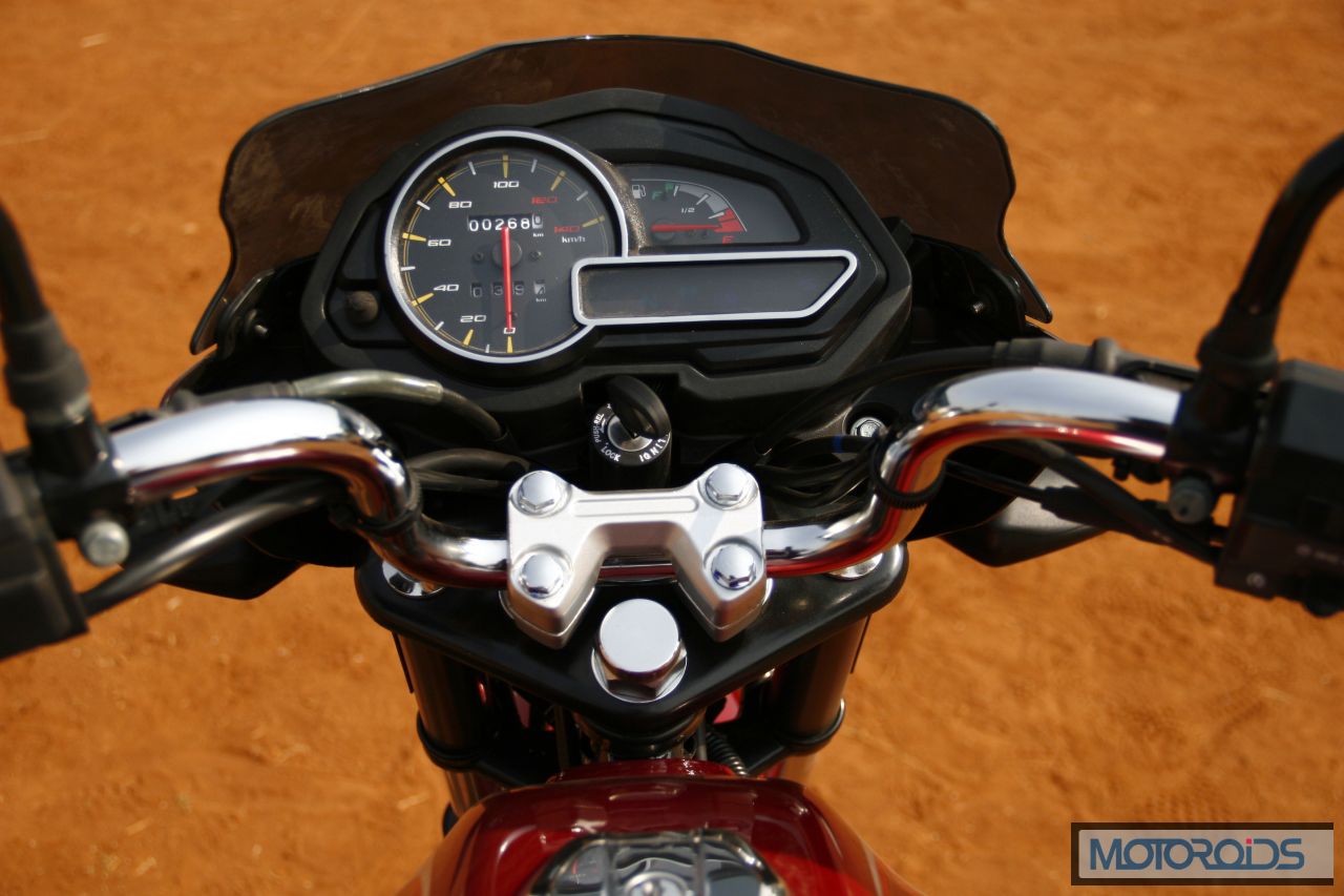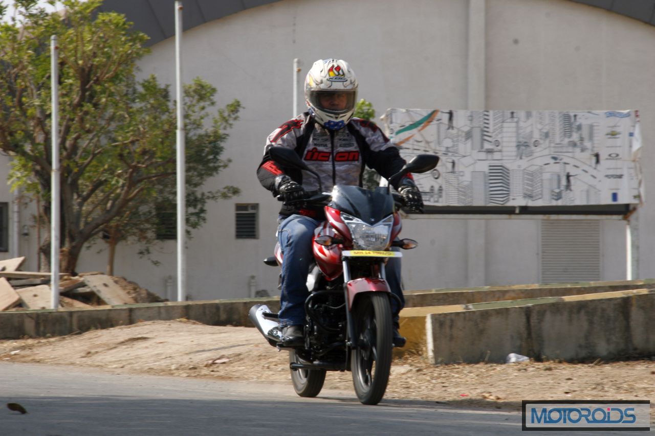 The ride quality as we mentioned earlier, is somewhere between hard to squishy. The bike takes most of the road imperfections in its stride with only the more abrupt bumps managing to filter in to a perturbing level. The riding position aids comfort too – it’s not overly upright, nor sporty. It’s just that wee bit short of a typical commuter position which makes you feel at home no matter whether you are coming to her from a Splendor or a Pulsar. It helps you loosen or tighten your elbows at will, and transfer a bit of a shock to the wrists and shoulders whenever necessary.