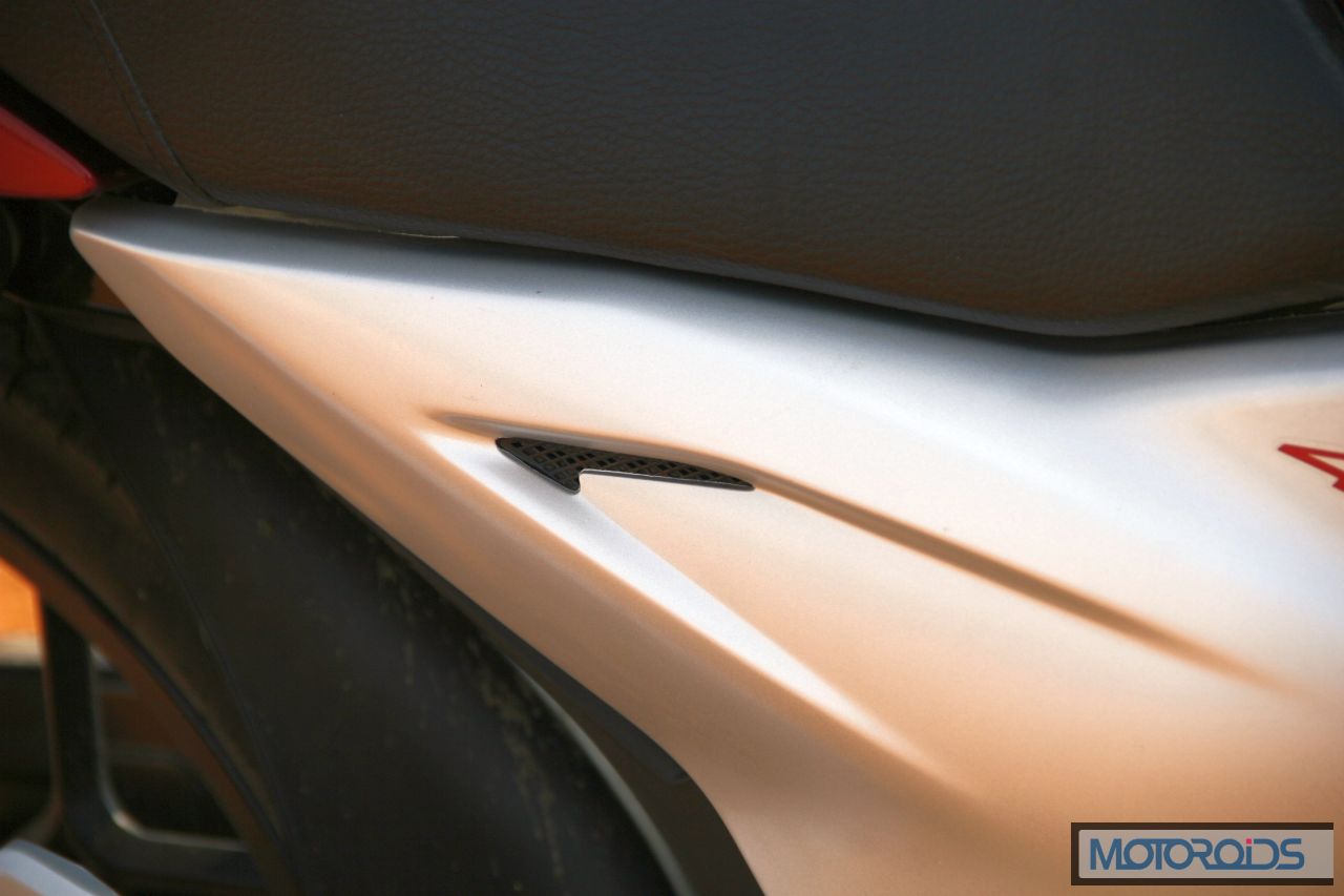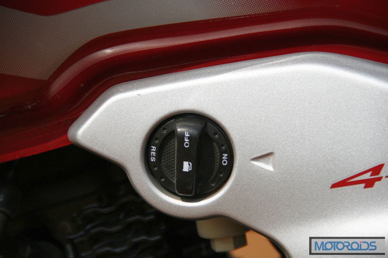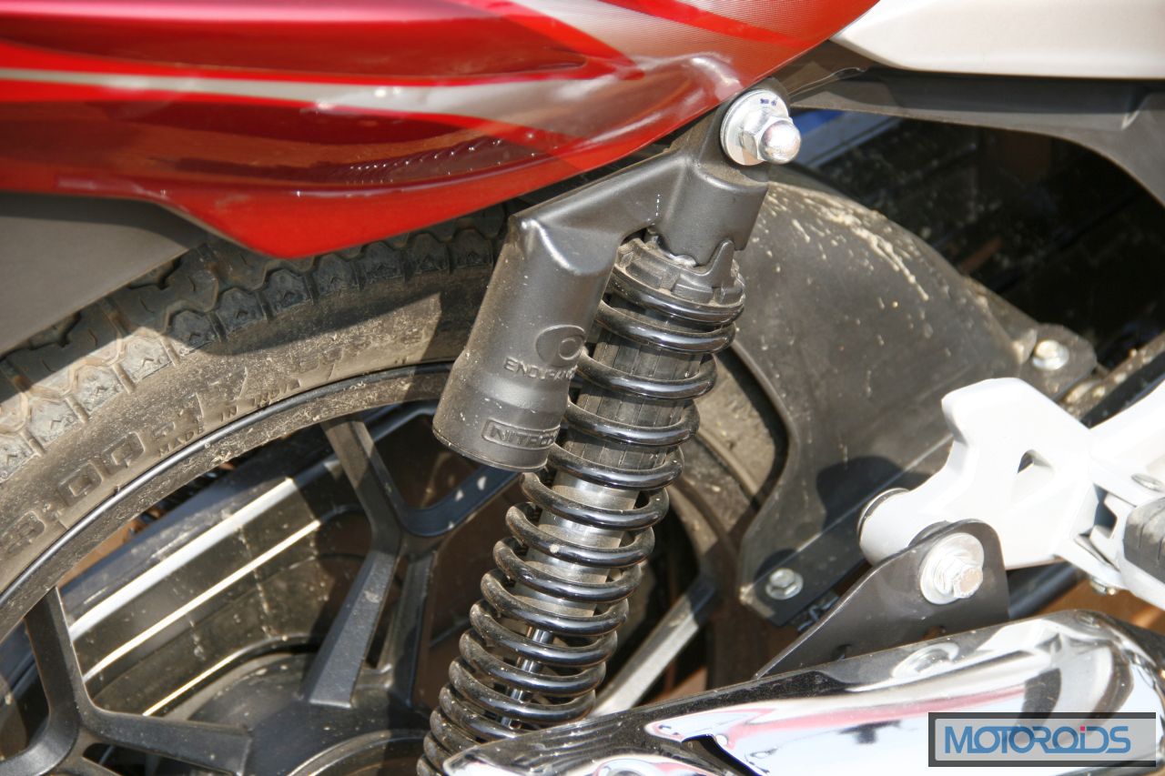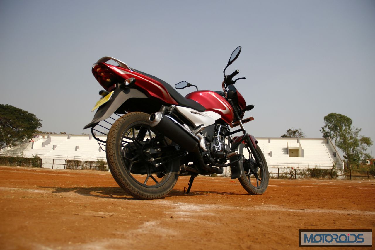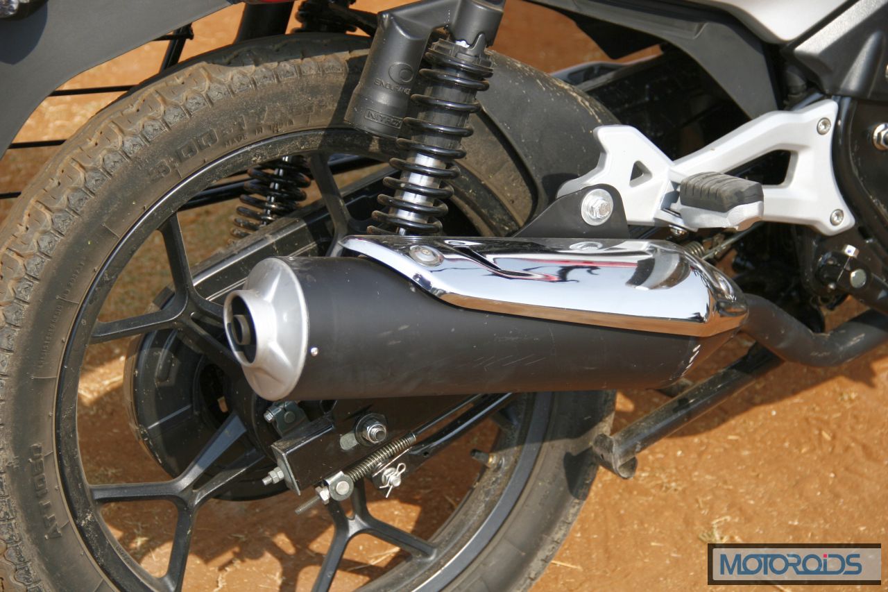 The ride quality as we mentioned earlier, is somewhere between hard to squishy. The bike takes most of the road imperfections in its stride with only the more abrupt bumps managing to filter in to a perturbing level. The riding position aids comfort too – it’s not overly upright, nor sporty. It’s just that wee bit short of a typical commuter position which makes you feel at home no matter whether you are coming to her from a Splendor or a Pulsar. It helps you loosen or tighten your elbows at will, and transfer a bit of a shock to the wrists and shoulders whenever necessary.