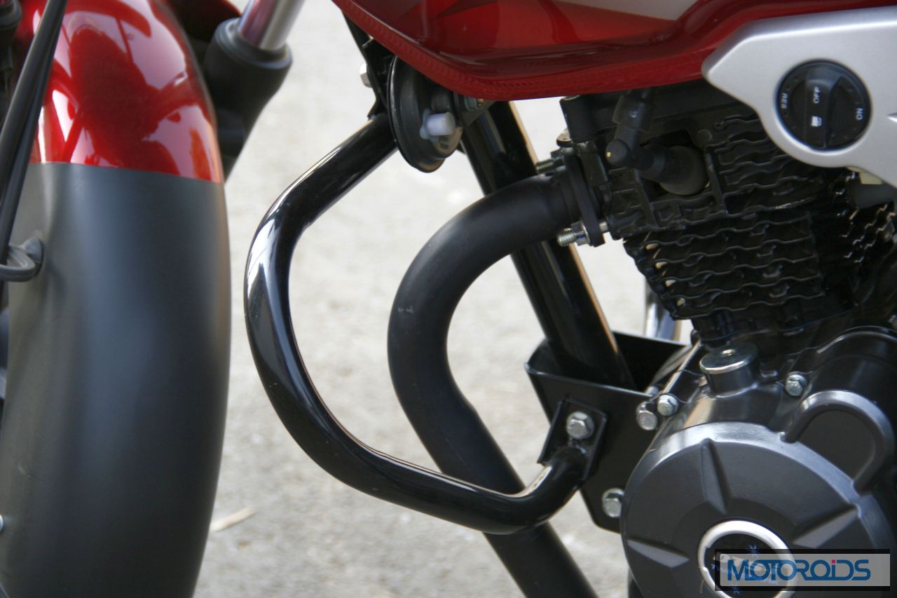 Apart from the powerful 4 valve engine and a five speeder tranny, you get an electric start, alloy wheels, maintenance free battery and a day flasher. Features like side stand, crash guard and saree guard have long been considered a part of standard equipment by the Indian customers, but the trend seems to be changing fast. Honda, of late, has been charging its customers separately for these items. We’re hearing murmurs that Hero Motocorp is gearing up to follow suit as well. The trick is to offer a bare basic bike, without any accessories, reduce the ex-showroom price, lure the customer in, and then charge him 2 to 2.5 k extra for the aforementioned fitments.