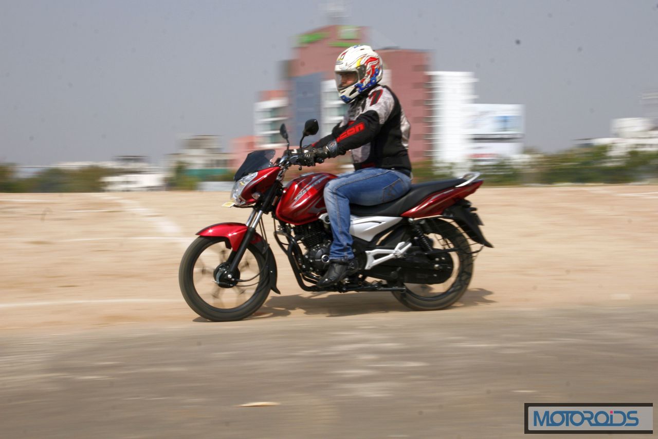 The Discover 100T has the longest wheelbase of all its competitors, and that observably aids its handling. Along with a well tuned suspension setup, with box type swing-arm, the 100T offers an above par handling package for the class. The baby ST made its handling prowess evident from the very first corner we threw it at. First, the longer wheelbase negates the tendency of the bike to tip mid-corner. You could feel the extension of the front wheel adding its bit of reassurance as you tilt the bike. The sizeable stature of the bike doesn’t make you feel awkward even as you lean off it. It’s pleasantly well balanced throughout its course on a corner.