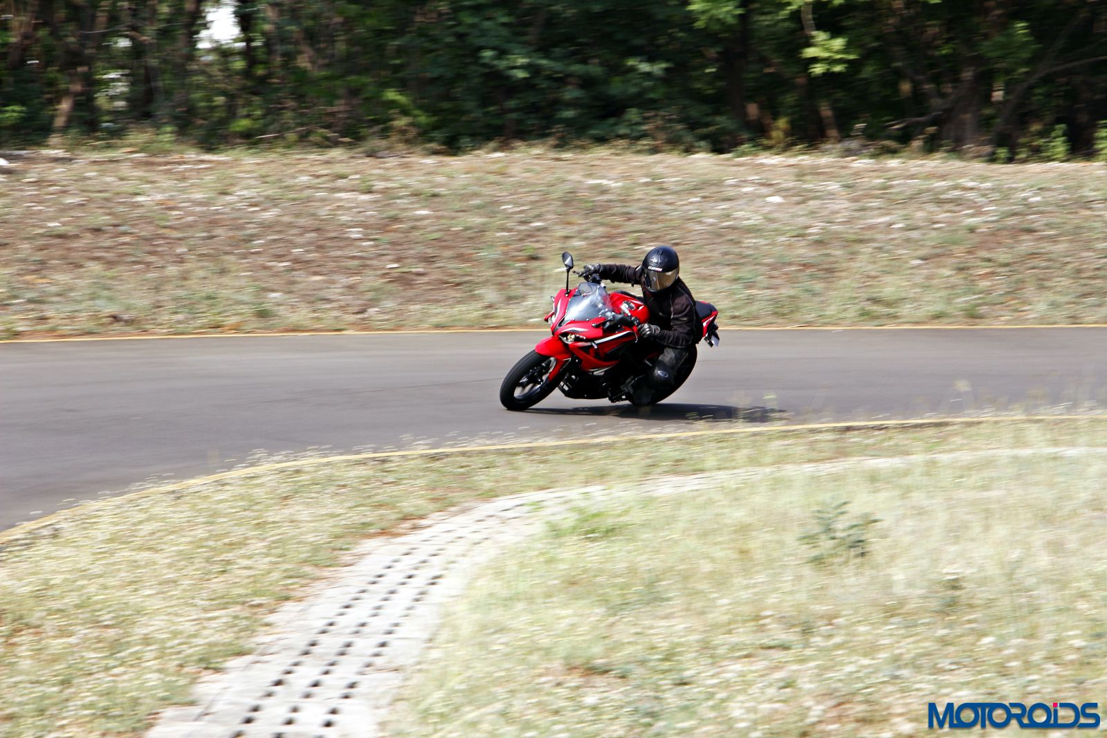 “So, how’s it?” gesticulates Rohan, our tracking car pilot for the day, ambling towards me as I coast to a stop at the pit lane at Bajaj Auto’s test track at Chakan, Pune. Still moving, I lift up the lid of my reflective visor to tell him. Behind him, Kalyani, our new photographer, lowers the Canon and I see the grin on her face. Perhaps it is a reciprocation of the grin on my own face, apparently visible inside even this full face helmet. They already know what I have experienced in the last thirty minutes and a dozen-odd laps. This, the Bajaj Pulsar RS200, is a hoot and a half to thrash hard.