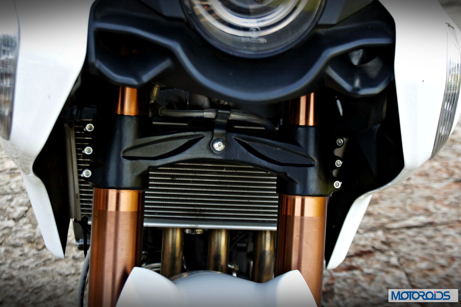 DSK Benelli hasn’t disclosed the pricing of the TNT 600 GT yet. The machine will be available in two colours, black, and the white one you see here, to be sold at newly set up showrooms across the metros.