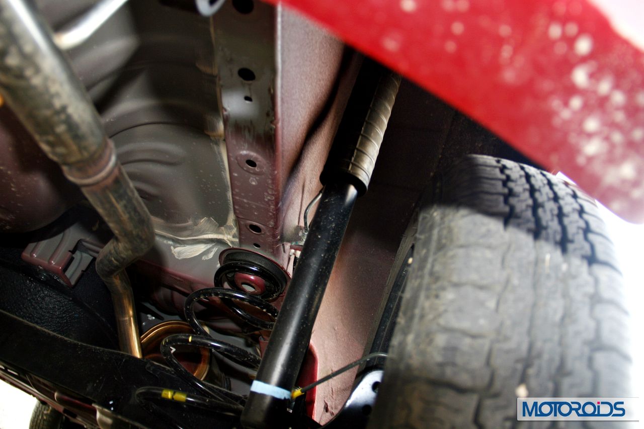 The Datsun Go features a McPherson Strut double pivoted lower arm front suspension and an H-type torsion beam rear suspension. The company has used a longer stroke rear damper to ensure more suspension travel and comfort for the passengers. The dampers used on the Datsun Go rear suspension are special ‘linear’ dampers with quicker response to unevenness. This is a technology which apparently has trickled down from the Infiniti brand of luxury cars owned by Nissan. The technology allows the dampers to generate the damping forces more appropriately than traditional dampers, allowing for a more ‘settled’ ride even over rough surfaces.