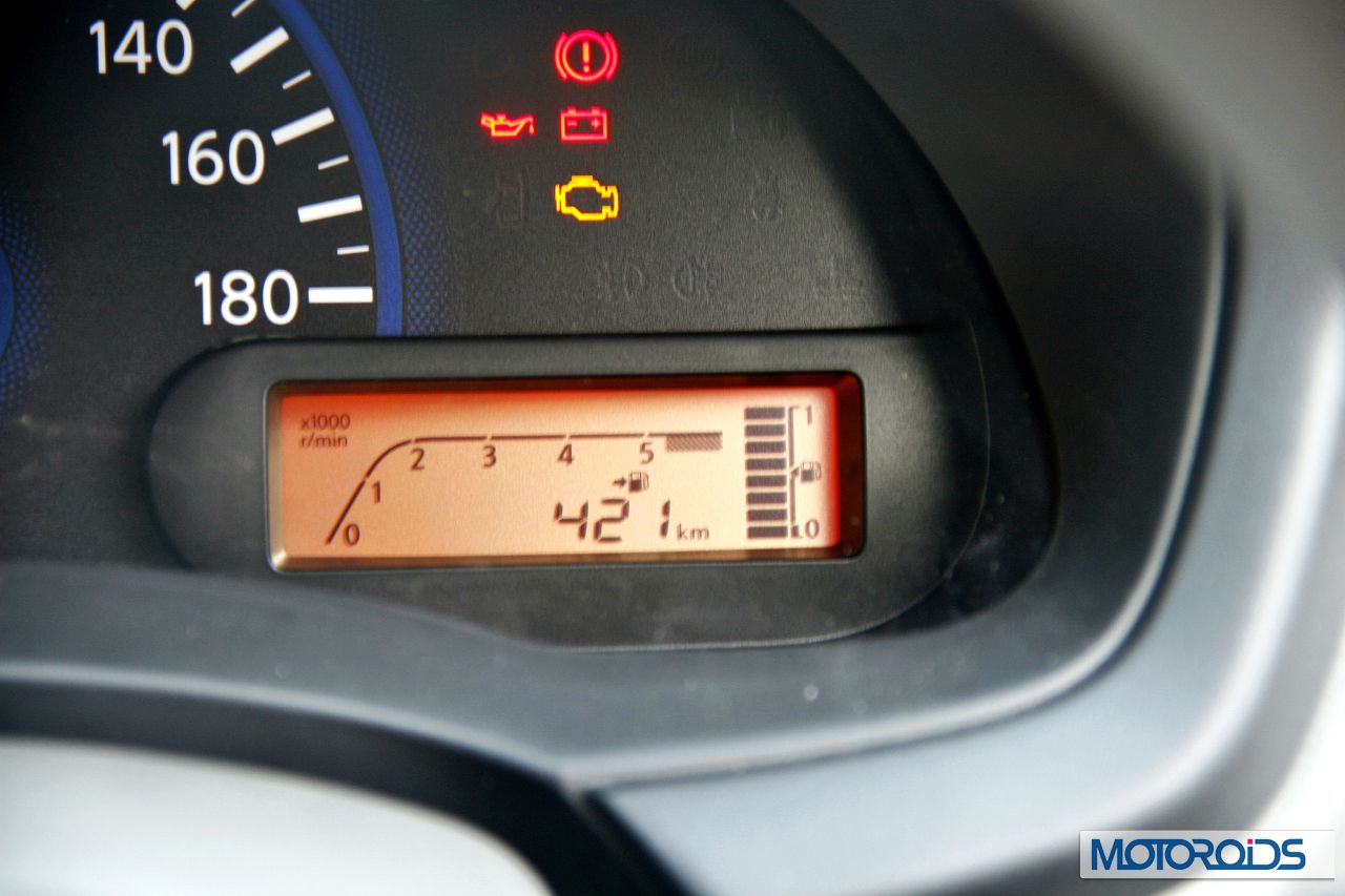 It’s easy to think that the Datsun Go is stripped of features as its been built to a price, but that’s not entirely true. In spite of targeting a sub 4 lakh rupee price tag (which may be OTR for the top end T variant, if some sources are to be believed), some of the features on the Go really amaze you. The instrument cluster, for example, though a simplistic unit, still features a digital tachometer and more importantly an MID, which delivers a sea of information.