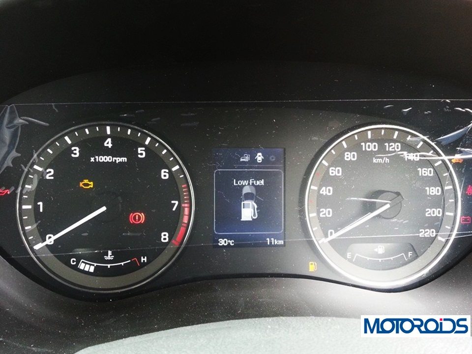 • As soon as you step inside the car and switch the igniton on, a coloured display slotted between the twin dials greets you with a multitude of information, including outside temperature display, a trip-meter, Average Speed of the journey, real-time and average fuel consumption