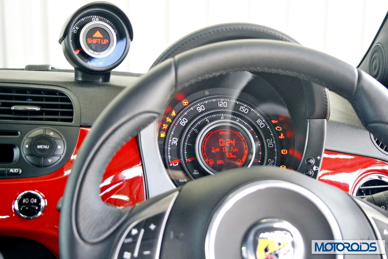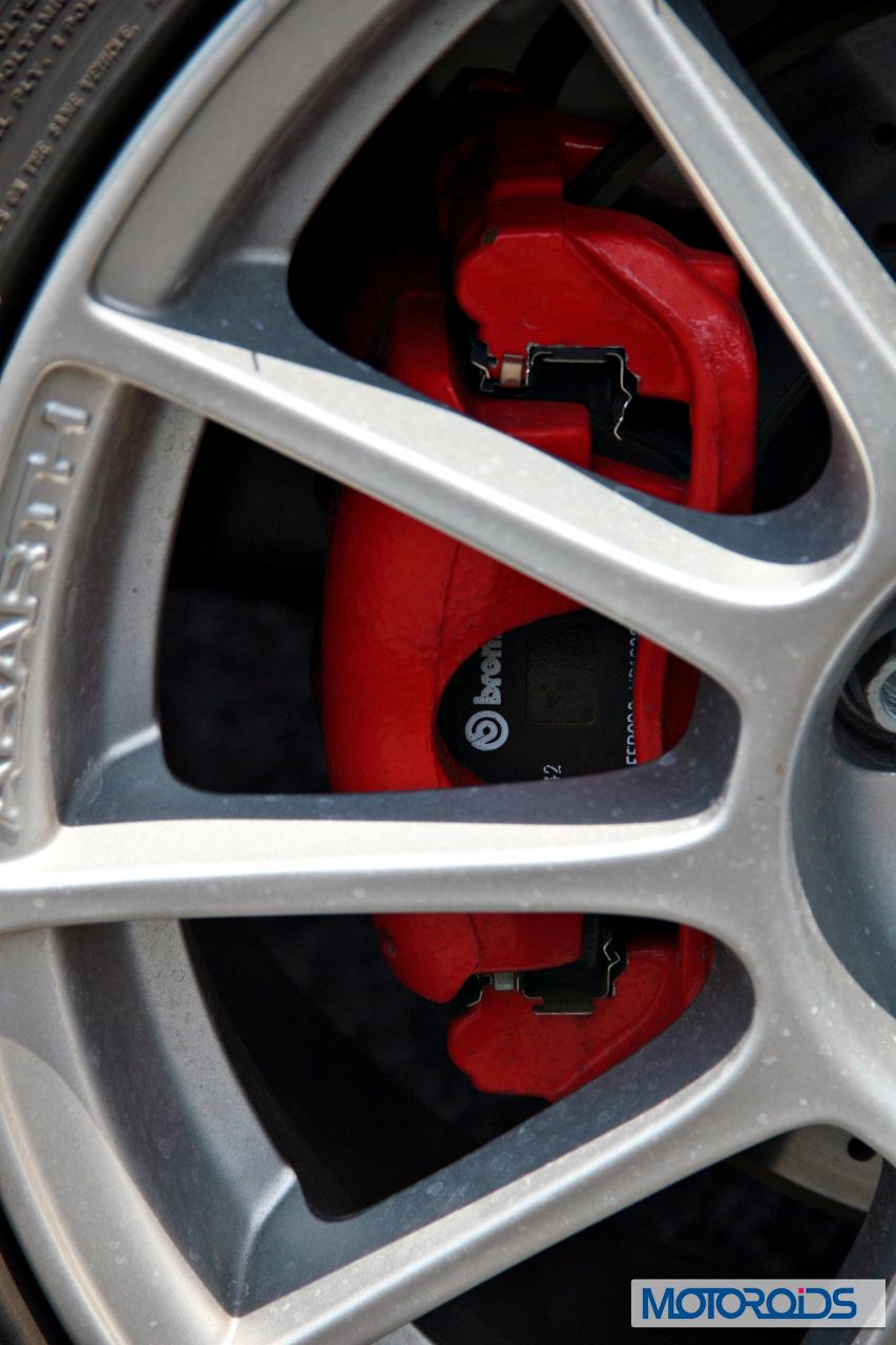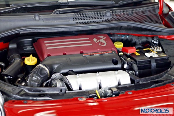 The Abarth edition is powered by Fiat`s MultiAir 1.4L 4 pot intercooled turbocharged petrol engine. This power plant pumps out 158 BHP@5500 rpm and 230 Nm of torque @3000 rpm. Pop the hood and it looks a tightly packed engine bay there, with the cast finished red engine cover bearing the Scorpion Logo and Esseesse lettering. Essentially, the MultiAir is Fiat`s nomenclature of the variable intake valve timing with electronic control. Electro-Hydraulic solenoids are employs resulting in significant improvements in torque and efficiency as intake valves are used to throttle the engine.