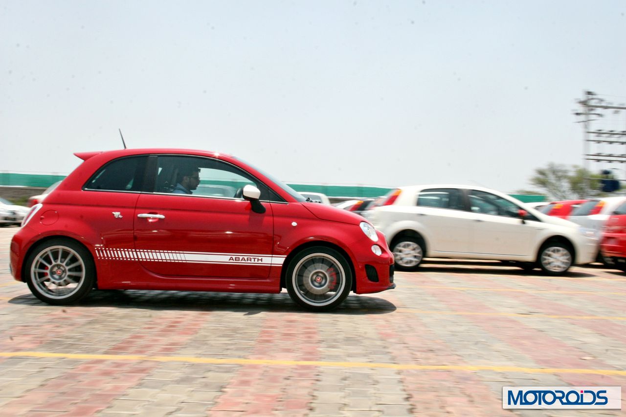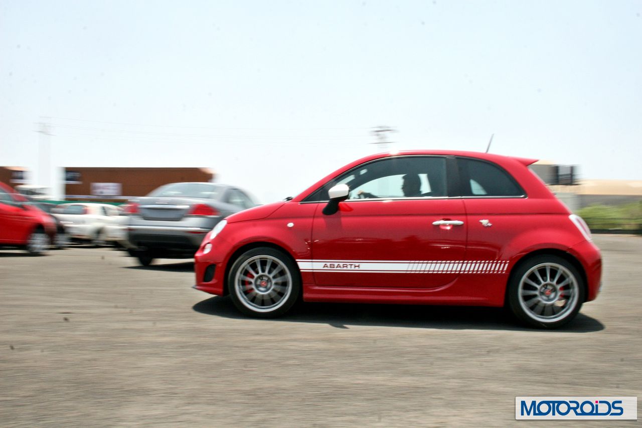 Slot into 1st, dump the clutch and it gets you ready to lay black streaks of rubber on the tarmac. The acceleration is quite fierce and considering its small volume, it feels even faster. The Abarth can manage a 0-100 in the region of 7.5 seconds which is fantastic! Even in the small closed facility of Fiat, we managed to run a riot and have loads of fun with the Abarth`s scintillating performance. The Abarth begs you to bury its sporty throttle pedal into the carpet and enjoy the burst of acceleration that no other car as small as this can give us.