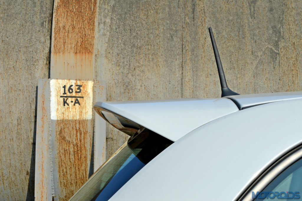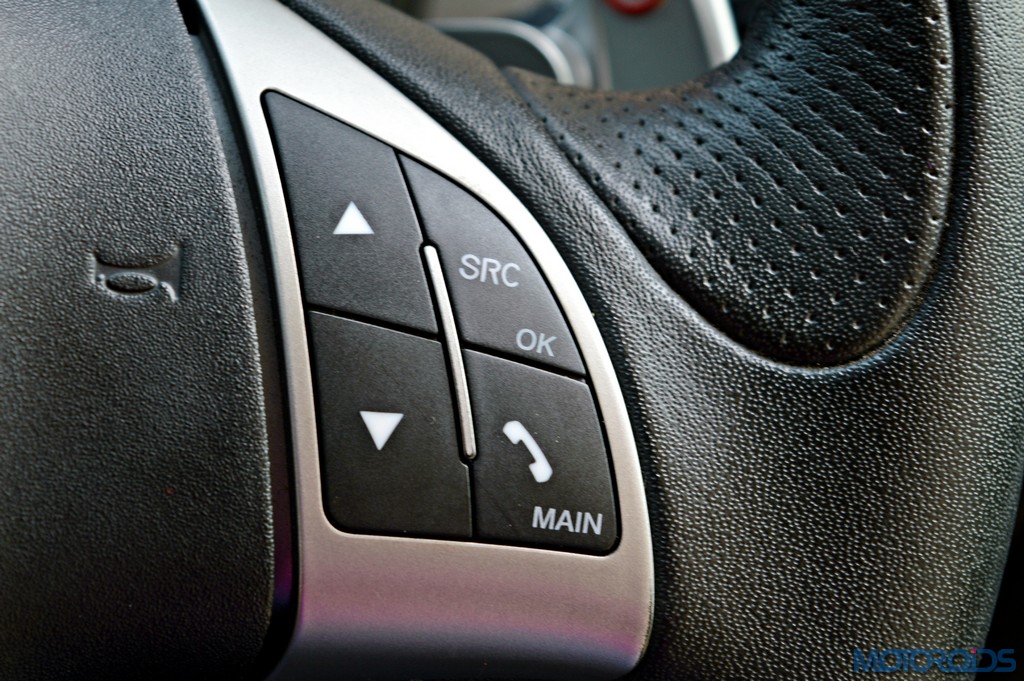 Instead, what one gets for the money is just a plain Jane radio with an MP3 player. At least it offered Bluetooth connectivity. The cabin has only traces of leather, some on the door trims and some above the instrument cluster. The leather wrapped, flat-bottomed steering wheel is chunky and feels great to hold though. A bit of fingering around reveals the metal shift paddles. Given it’s a focused driving machine, we’ll let the vanilla interiors slip by.