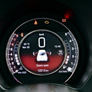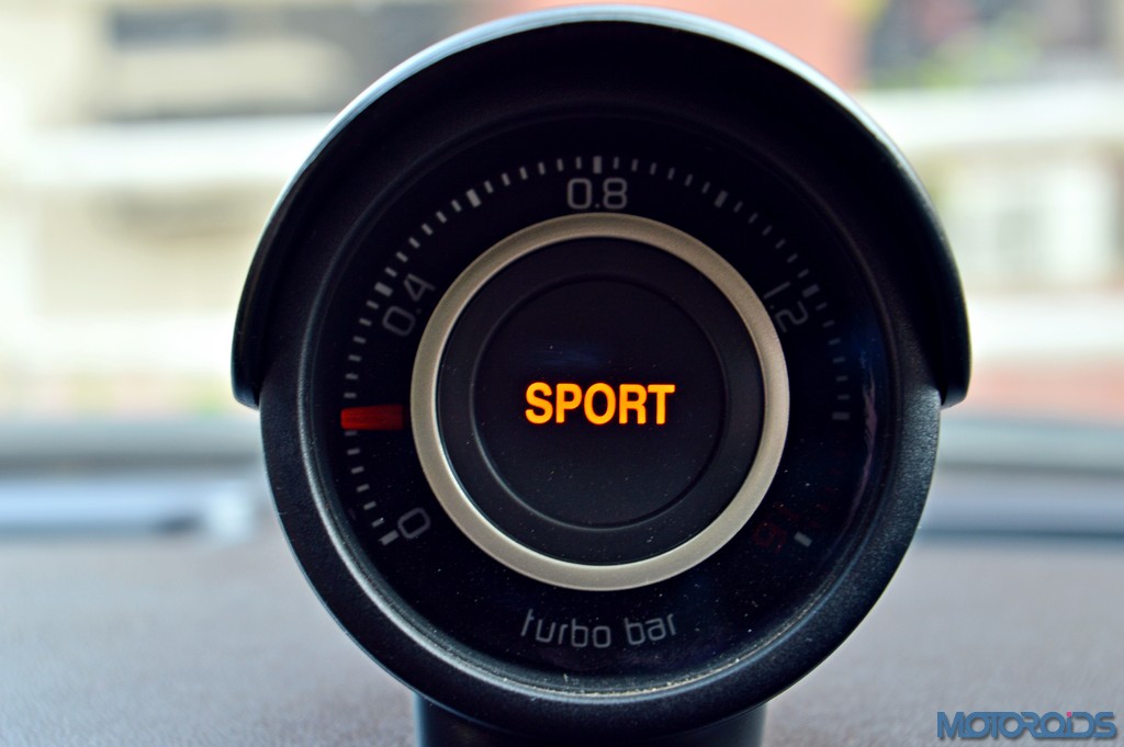 Once you’re used to the transmission, however, the little Abarth is a very enjoyable car, especially when another button marked ‘Sport’ is pressed. Hardware requisite for speedy performance are called into service, which means that TTC (Torque Transfer Control) sign lights up, throttle inputs are dealt with more alacrity, the steering response becomes more attentive and the exhaust notes become raspier. Oh, and the instrument console also lights up in shades of red, and the little pod’s SPORT lettering lights up. That pod actually shows how much boost the turbocharger is running at.