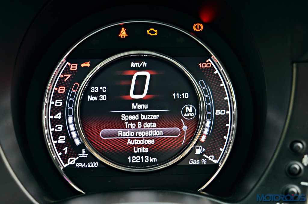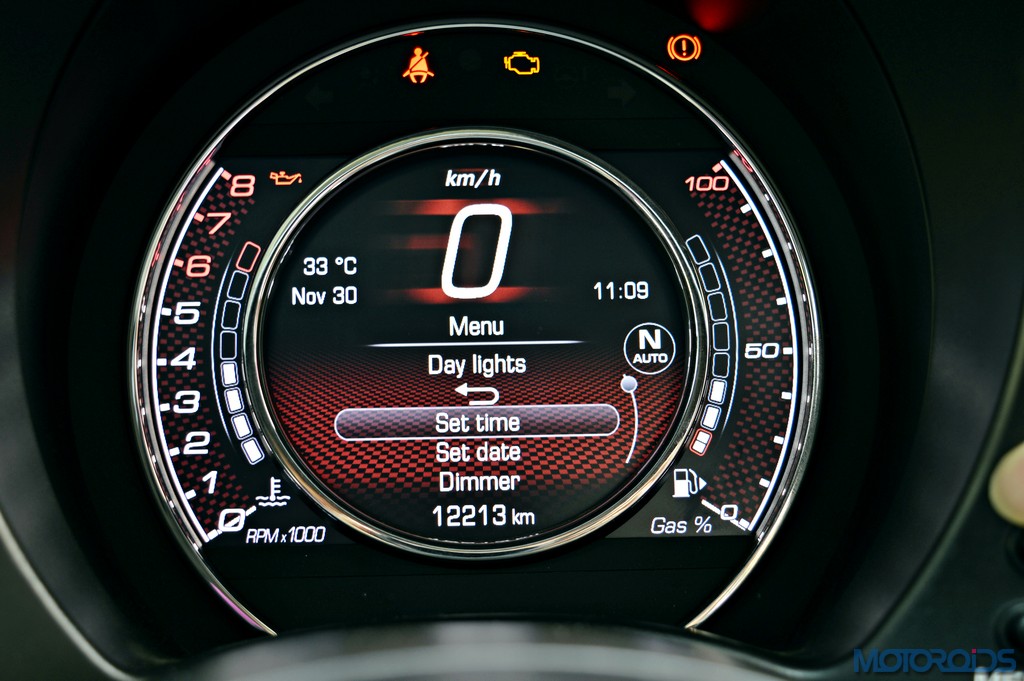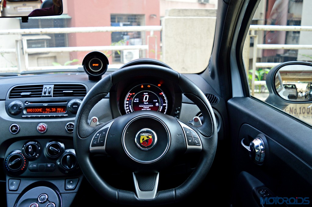 As you would have guessed by now, the automated manual transmission is painfully slow to respond, especially when you started off after reading your girlfriend texts that she’s home alone and horny. The silly, confused Auto mode is shooed off with a press of another button which reads “A/M”. Now you’re on your own – just you and the paddles. And that darned gearbox. In manual mode, the engine screams away till you actually intervene with your fingers. As far as shift response goes, things hardly improve. With a flick of the paddle, one has to wait for an eternity for Carlo Abarth to personally descend from heaven and shift gears. In a performance car, this kind of a shift response is a buzz kill, as future moves are made difficult.