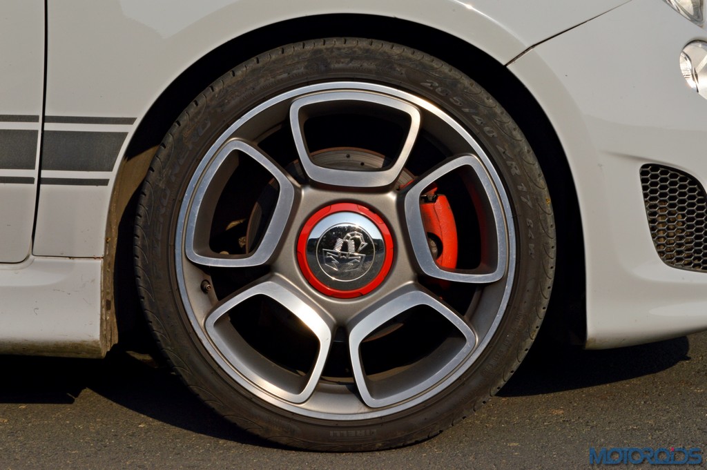 The 17-inch wheels deserve a special mention, as they look like shiny pieces of art rolling. The hubs are tasty quarter spheres of chrome etched with Abarth’s scorpion logo in the middle and bordered in red, while the spokes blend into each other to create some sort of a visual illusion that only an artist can achieve. The Abarth 595 comes with 205/40 R17 Pirelli P-Zero Nero tyres.