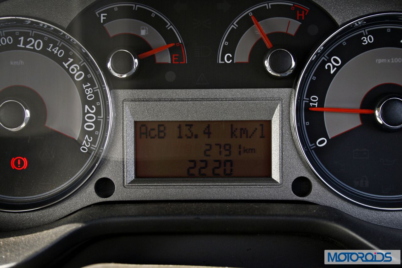 Even after blazing through the expressway and driving really hard on the Aamby valley roads, we managed 13.4 kmpl