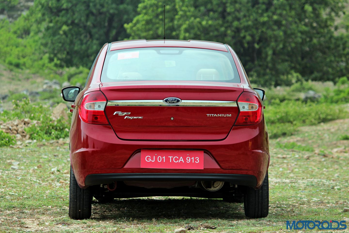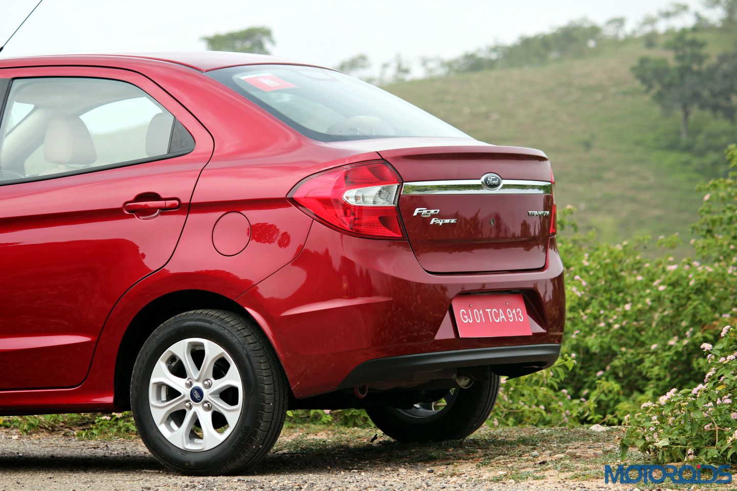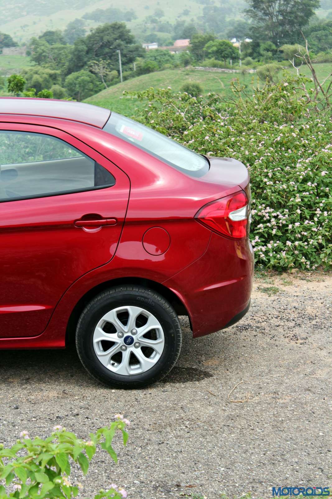Some basic, yet elegant sculpting below the shoulder line, along with mild wheel arch flares round things off on the Aspire’s sides. Ford says that the shape of the side profile, along with side mirrors, has been honed to be aerodynamically optimistic, with more than 140 hours of wind-tunnel testing. The Ford Figo Aspire is grounded by 14 inch alloy wheels wrapped around with 175/65 tires. Upsized wheel and tires would have been appreciated, as the visually underwhelming footwear plays spoilsport.