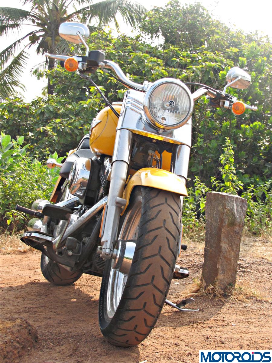 Going around bends isn’t the Fatboy’s forte, not that it cannot- but is rather restricted by the footboards/exhausts that allow no more than (Harley specified) 27 degree left and 26.2 degree right leaning angles. Even with constrained lean angles, torquey long strokers have their own pleasure while going around corners- you may put your left foot and the gear lever to rest and just play around with the throttle to get in and out of twisties. The pleasure of riding the Fatboy around curves doesn’t come from making the footboard kiss the tarmac, but from the effortlessness in which the Fatboy works itself around.
