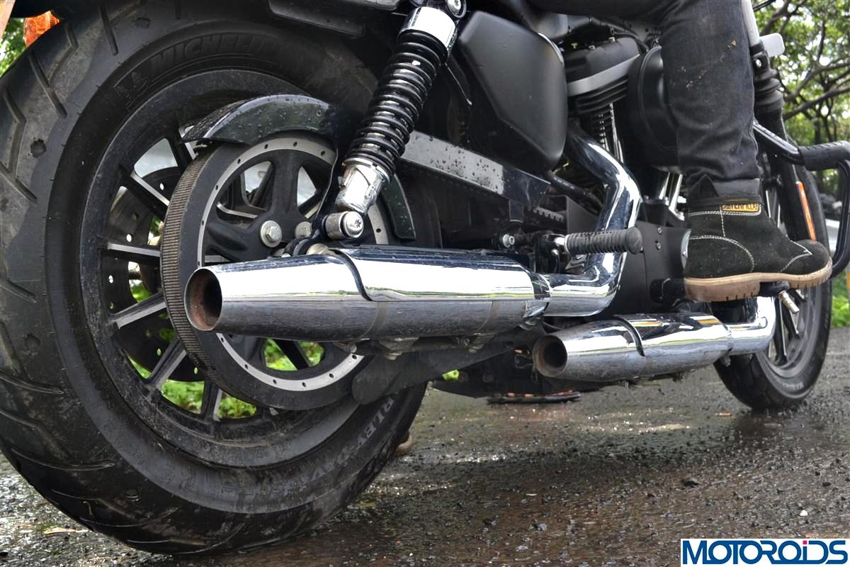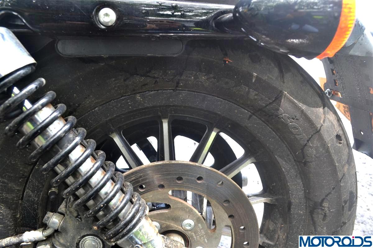 The Iron 883 sports 39mm telescopic fork up front with 92mm of travel and a measly 41mm travel on the twin shocks at the rear. Where on one hand the 883 is a breeze to ride on good stretches with its comfortable riding posture, it does throw a tantrum while going over rough patches. While the front suspension might still make light work of the rough Indian roads, the rear would send the undulations up your spine. While it might still be bearable for the rider negotiating broken stretches, it’s a certain nightmare for the pillion. No wonder the stock bike comes with a classic styled solo seat. The Iron 883 loves straight open stretches of good tarmac and that is exactly where it should be ridden. Any deviation and you have a shock treatment in the offing.