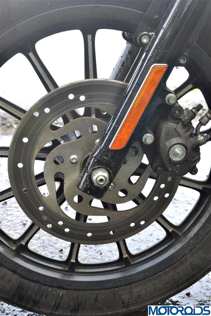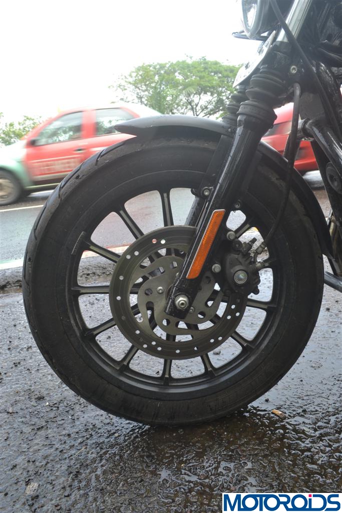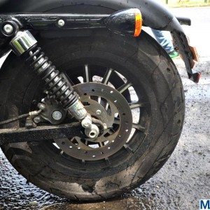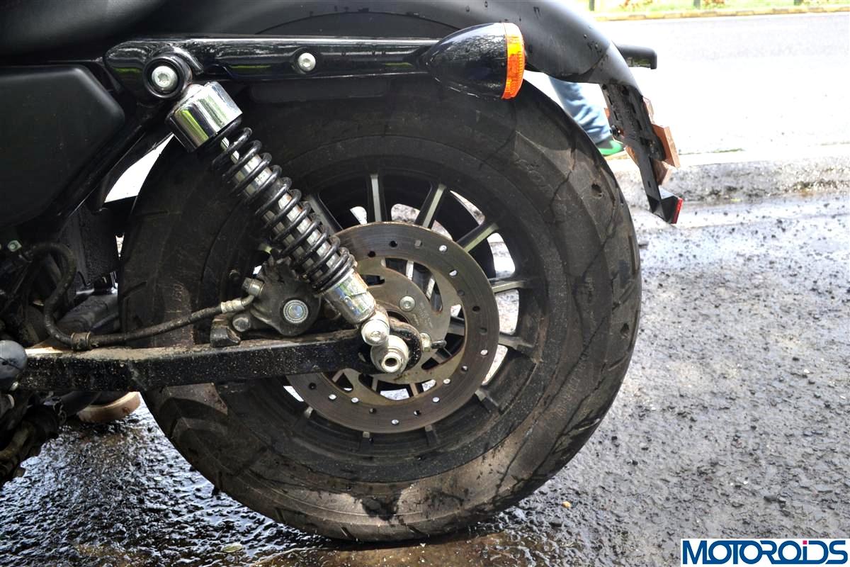 With a 292mm twin pot caliper single disc at the front and a 260mm single pot single disc at the rear, the Iron 883 offers decent braking performance and makes no drama when slowing down or coming to a complete stop under routine conditions. Its only while attempting to slow down from higher speeds, you feel the need for a stronger bite. ABS would have been an extremely welcome addition on the 883 considering the punch it packs.