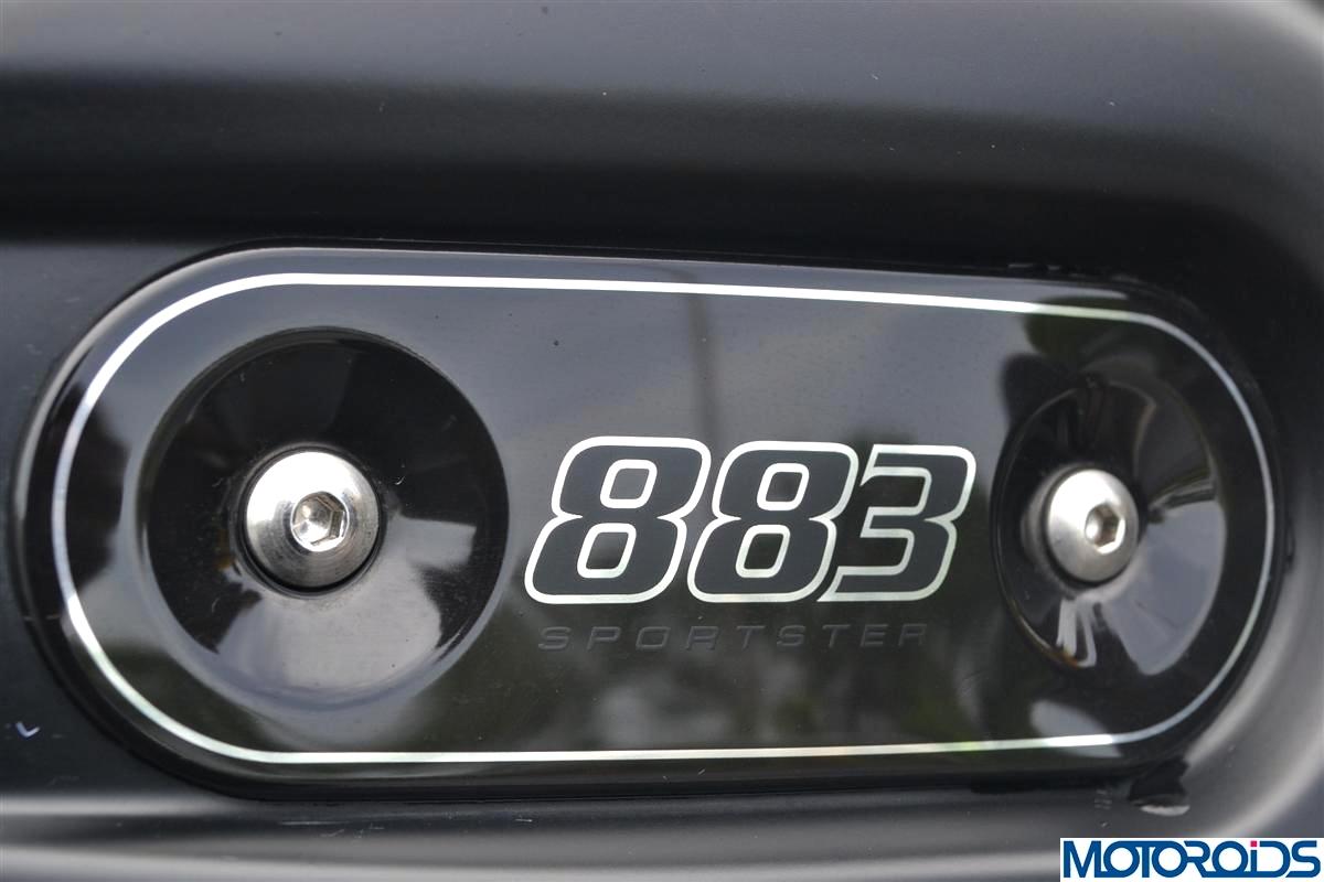 The Harley Davidson Iron 883, overall, is a well finished motorcycle. The matt black coat right from its peanut shaped 12.5 litre fuel tank to the rear fender is consistent and it’s hard to find any rough edges on the bike. The integrated stop-turn-tail lights while eliminating the need of an extra stop light, adds a minimal but classy touch to the 883. The difficult to recognize oil cap located on the right side panel reduces the effort to replace the engine oil. The press and rotate mechanism might make the motorcycle look vulnerable to mischief, but the method itself would be a suspense to many.