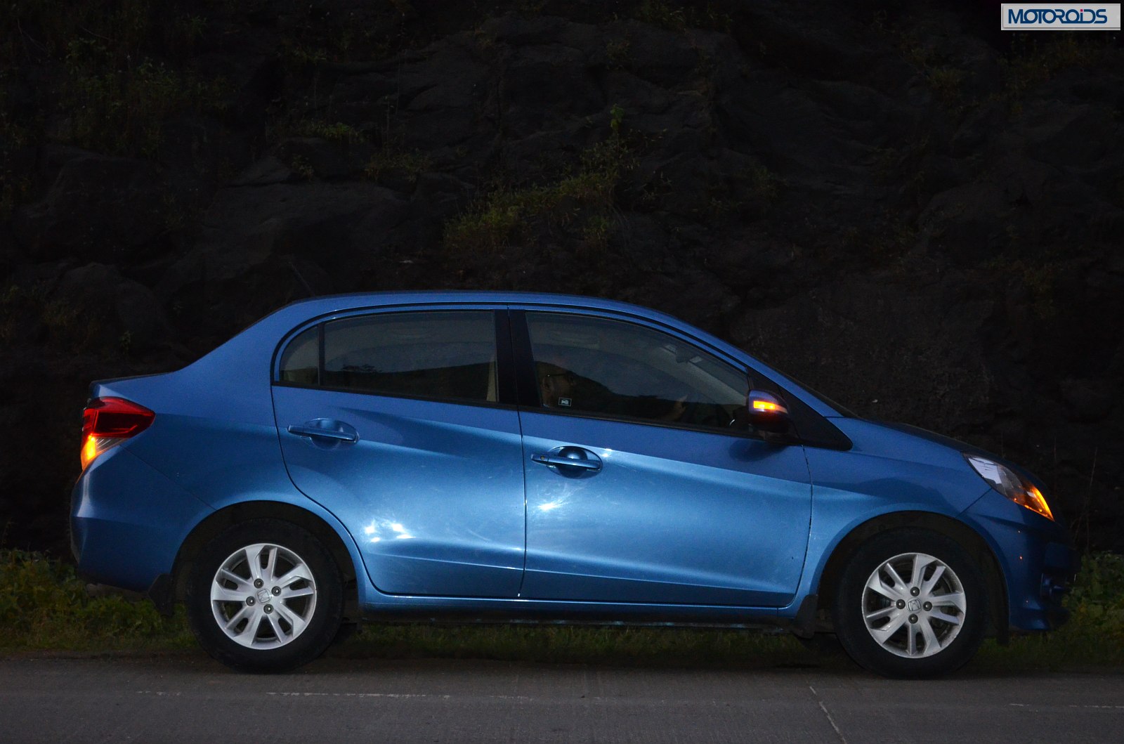 However, the differences start getting more apparent the moment you have a look at the car’s profile. The Amaze not just gets a boot but also boasts of larger rear doors and a 60 mm longer wheelbase. The highlight here is the set of creases that run along the length of the car’s body and in the process, manage to lend it a sophisticated look. The designers at Honda have truly done a remarkable job of seamlessly plastering a boot on to the Brio and the car looks pretty well proportioned (no Swift Dzire like ungainliness here).