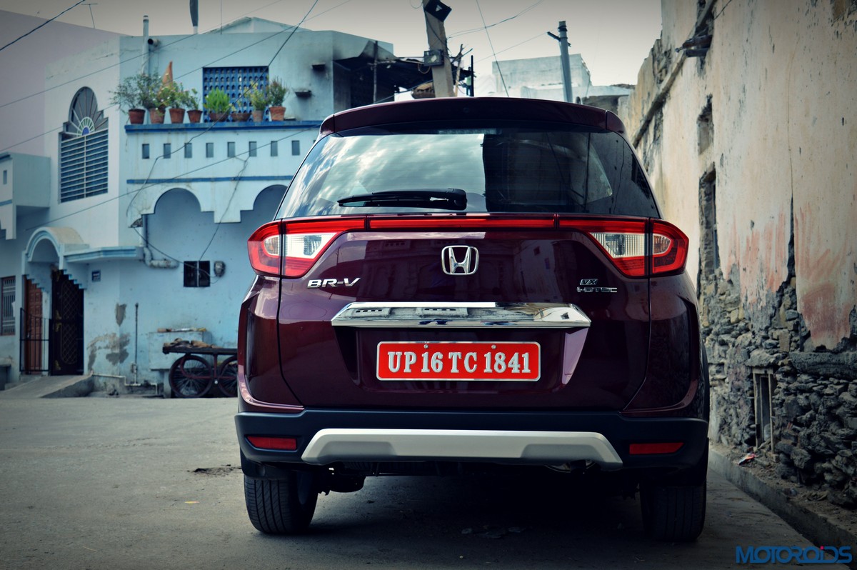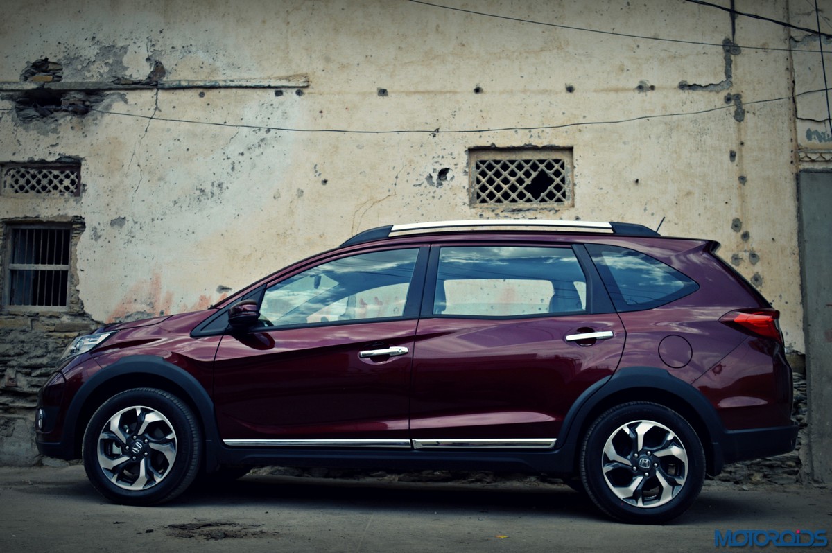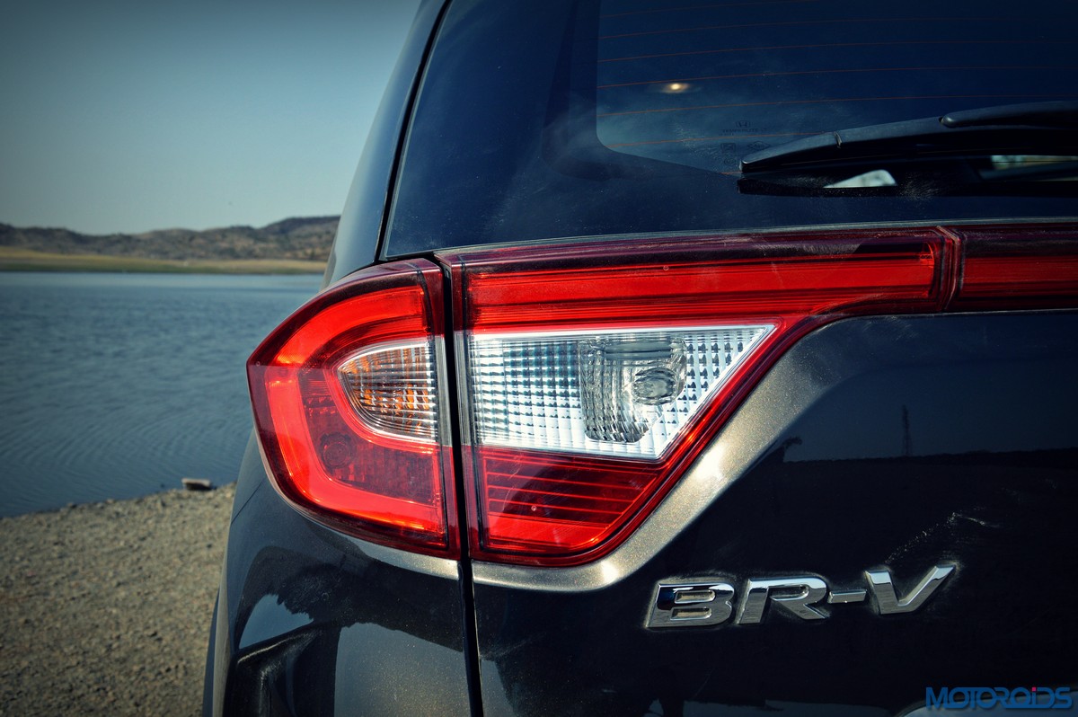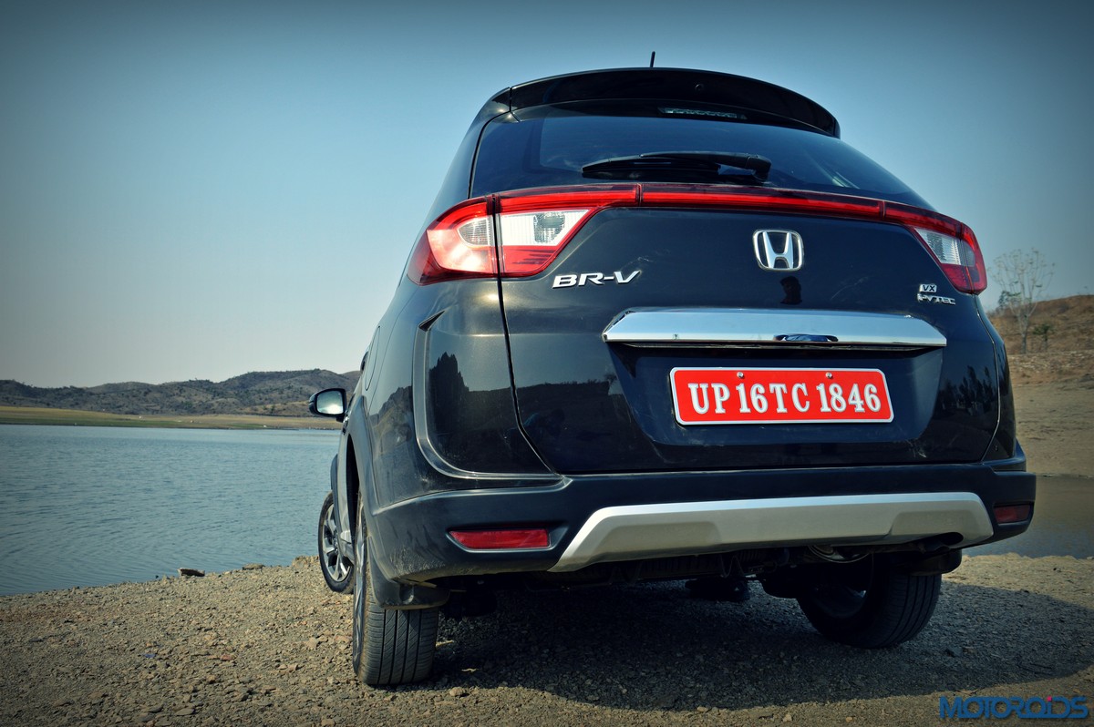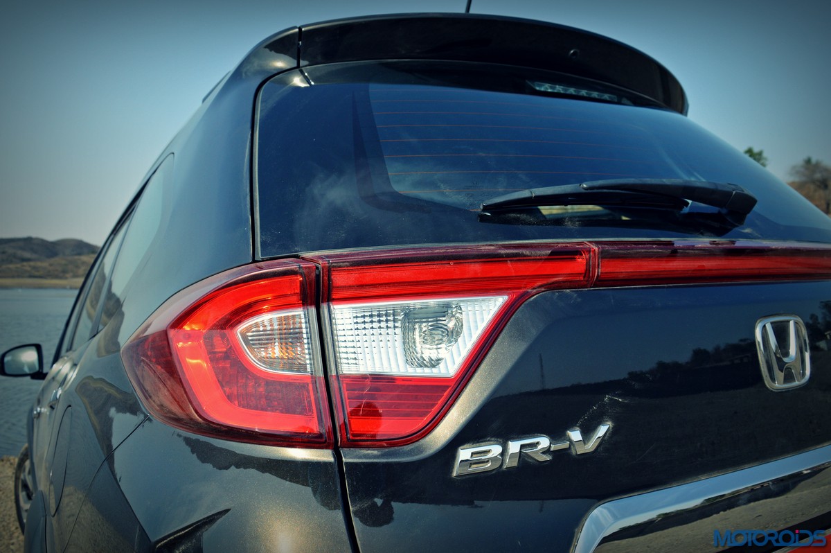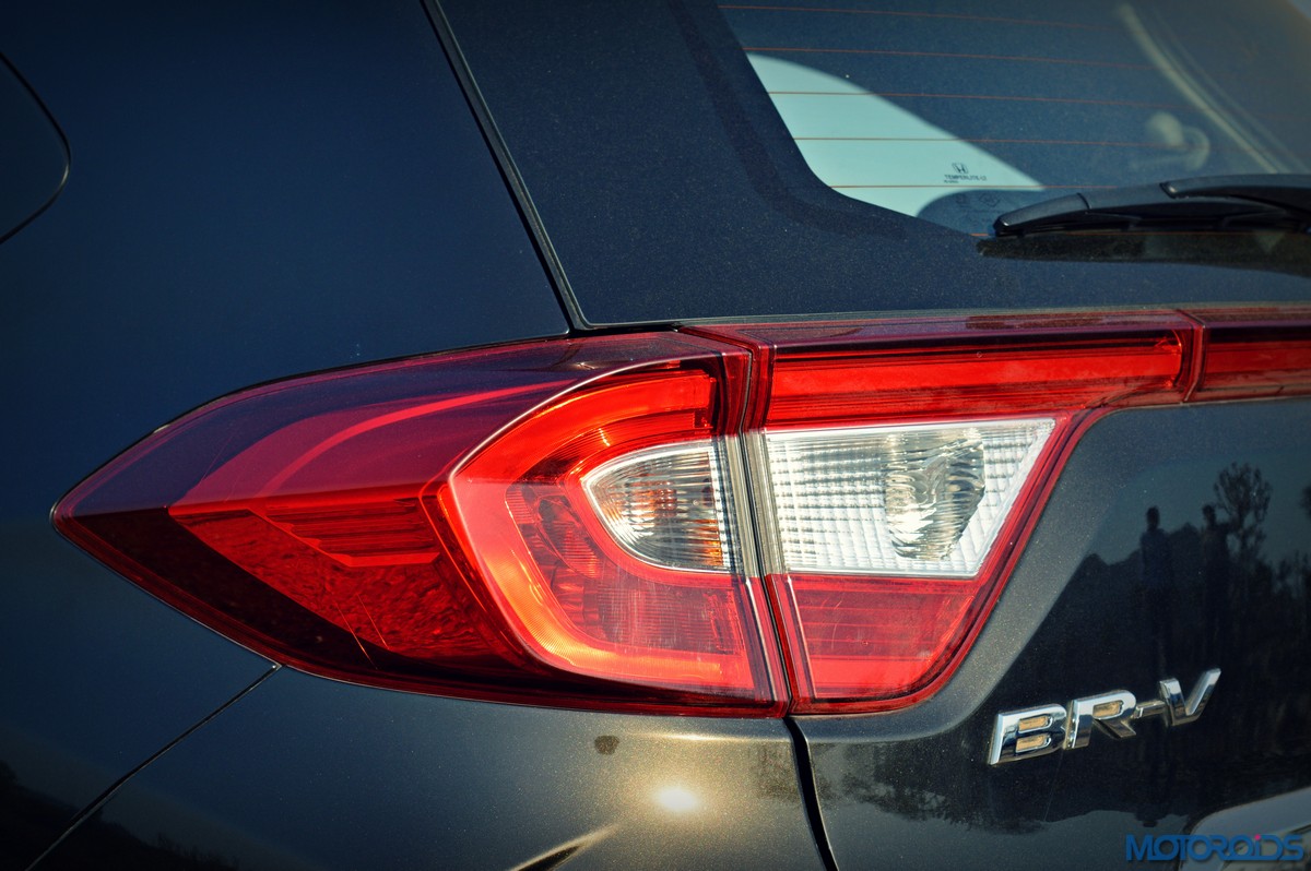 The resemblance to the Mobilio is laid bare on the sides, with the familiar kink in the window line being the most notable giveaway. Things are however spruced up with chrome finishers below the doors, and smart body cladding with small plateaus on top of the wheel arches. Again, familiar slashes of bodywork on the doors also visually link it to the Mobilio, and its length. In fact, the BR-V is so long that it manages to make its 210 mm strong ground clearance feel like a hairline fracture. Which mind, you is a figure only matched, not usurped, by the Renault Duster AWD. In fact, it is so long that, at 4456 mm, it stretches more than 14 centimeters longer than its nearest rival, again, the Renault Duster.