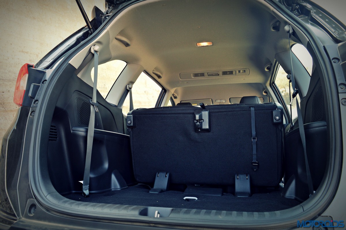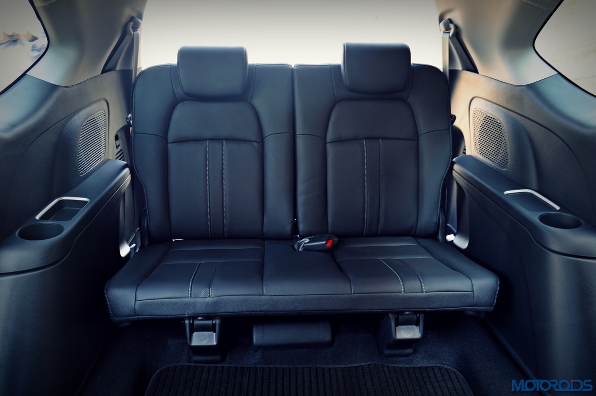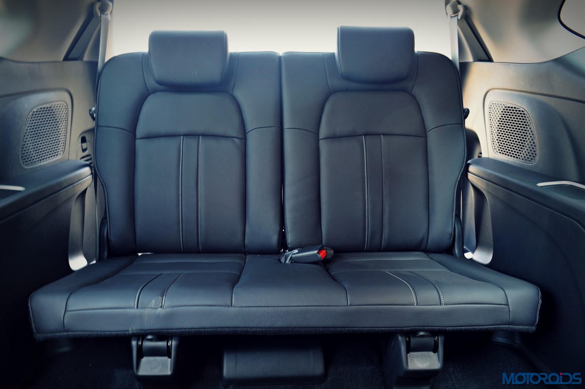 The class-leading length and the voluminous, MPV-derived cabin, however, ensure that both head- and leg-room aren’t a cause for concern for the second row occupants, who also get an integrated arm-rest. Under thigh support isn’t the best however, and the relatively flat second row seats are to be blamed. The large windows make the cabin airy as well, while the wide doors and the second seats, which come with a 60:40 split, tumble down at the touch of a lever, allow for a comfortable ingress to the third row. The rear most seats are a bit upright, very flat and feature a 50:50 split, but surprisingly comfortable. Obviously, legroom here isn’t as generous as in the second row, but it isn’t cramped either, and I, who stands 5 feet 9 inches tall can comfortable spend a couple of hours there, without my knees kissing my chin, and enjoy my drink in my dedicated bottle holder. Also, the large rear window doesn’t spoil the rolling views outside either.