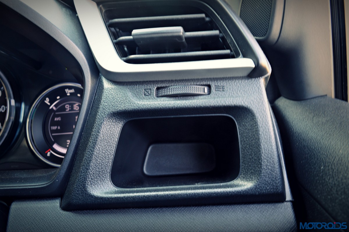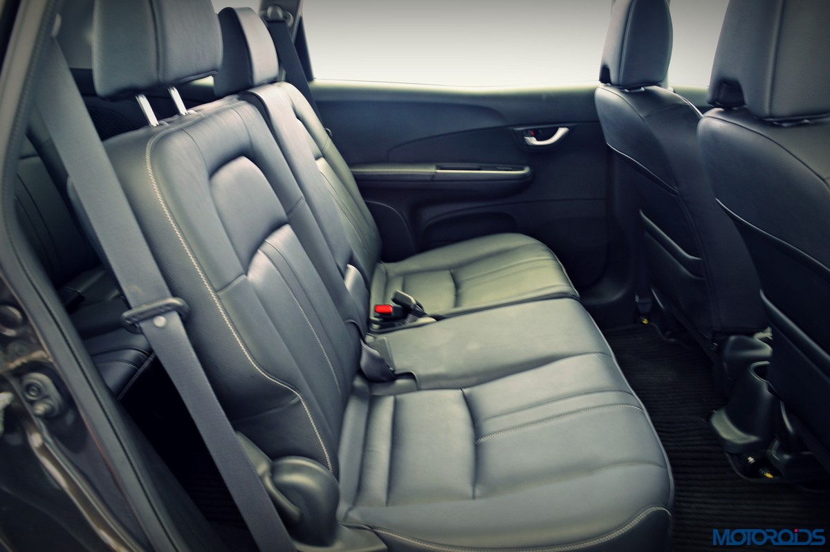 As for features, the BR-V might make the Indian consumerist feel wanting for a bit more. Apart from a touch screen and navigation, the BR-V misses out on the parking sensors, reverse parking camera and even auto headlamps and wipers. There’s only one 12V charging socket inside. Notable and appreciable features include a push button start, several cubby holes on the dashboard, 1-litre bottle holders on the door pads and a couple of cup holders.