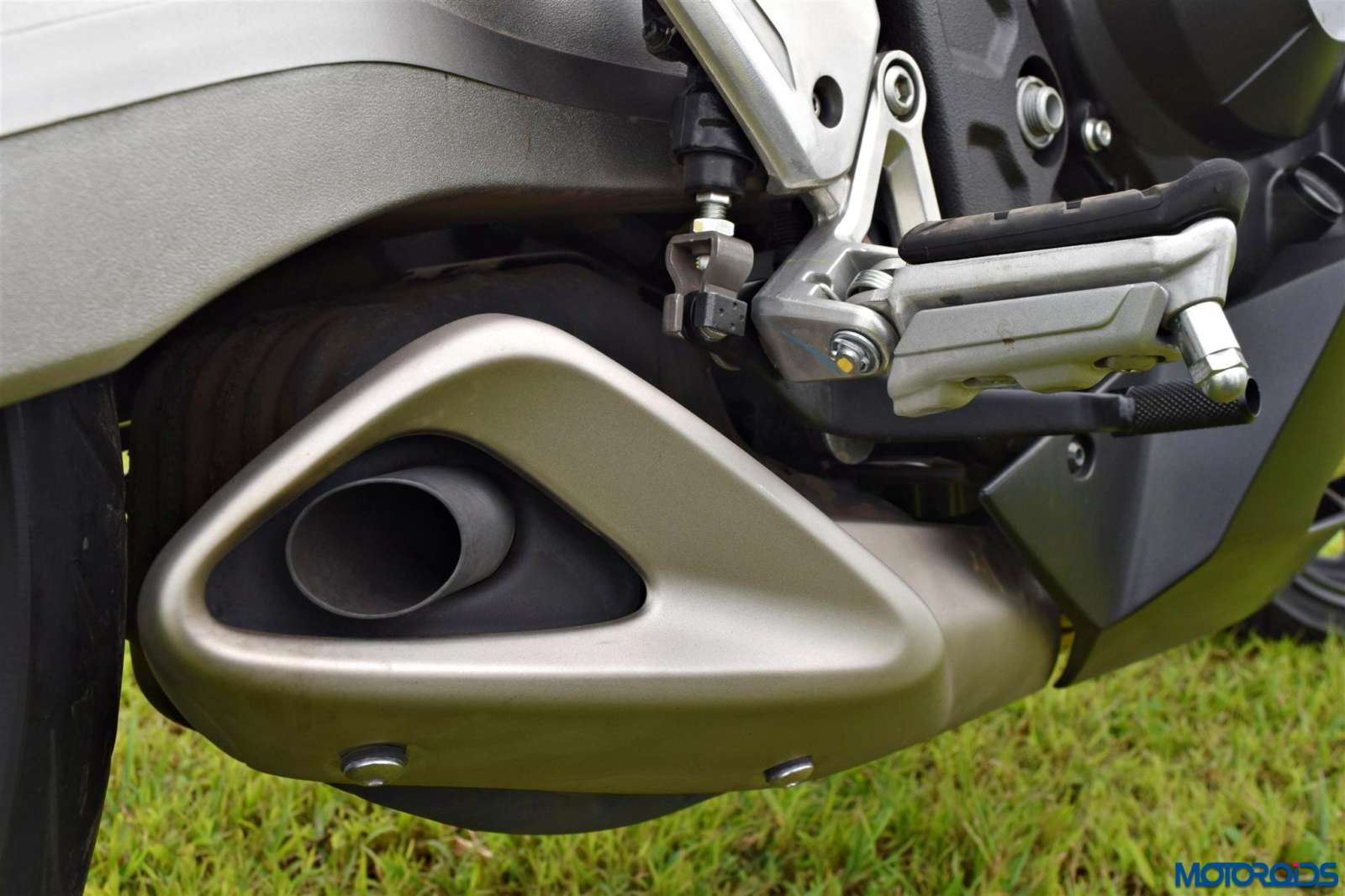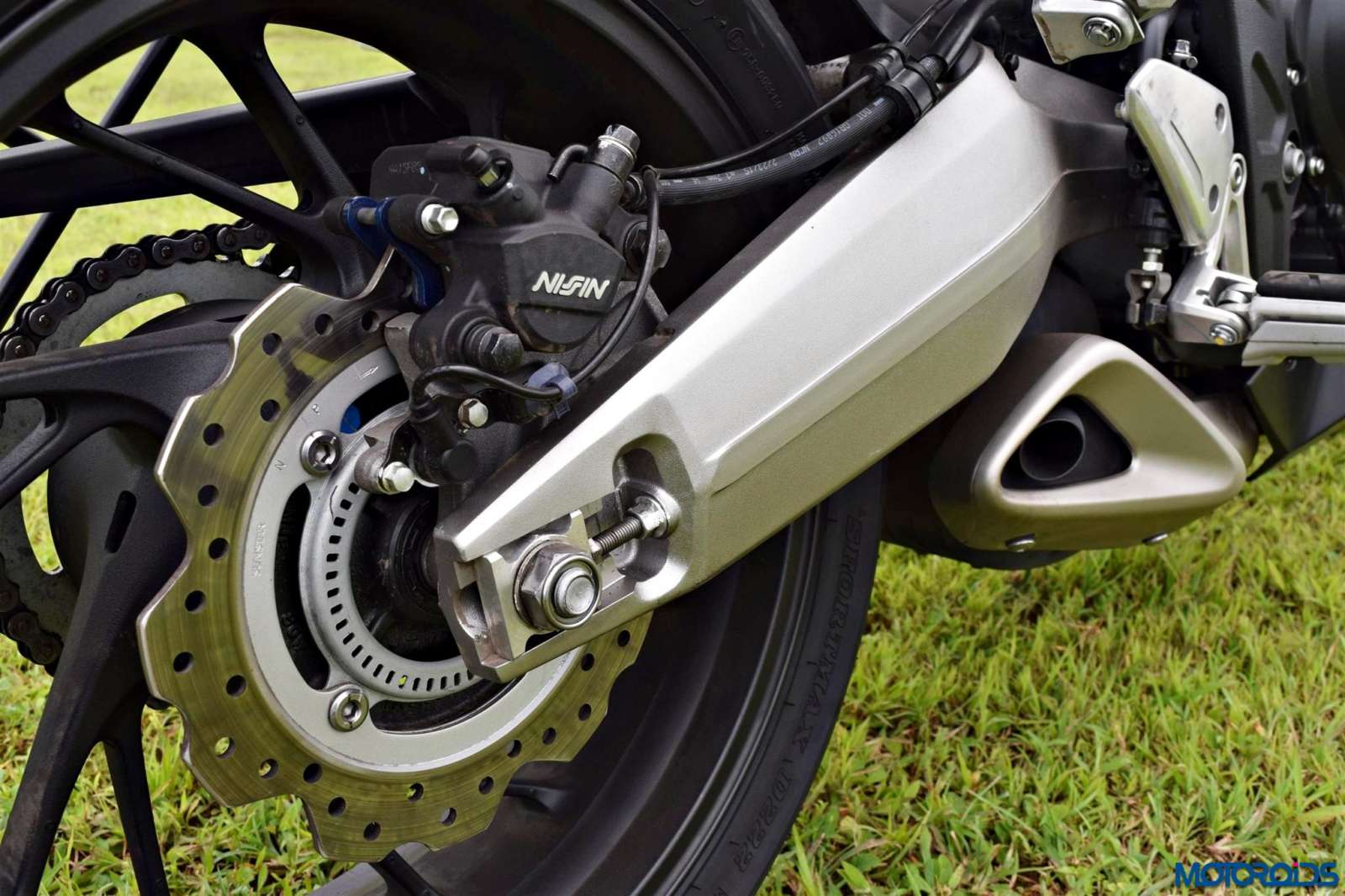• The gorgeous looking boomerang swingarm forms one of the highlights of the design package that arcs over the exhaust on the right side.