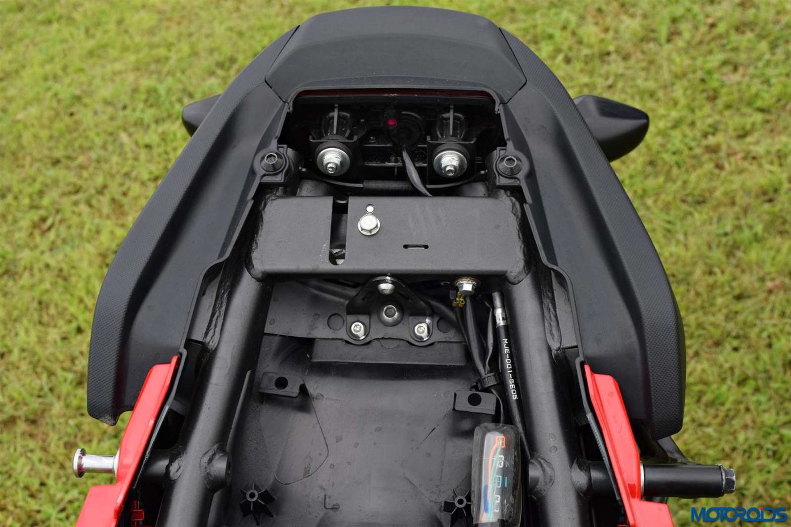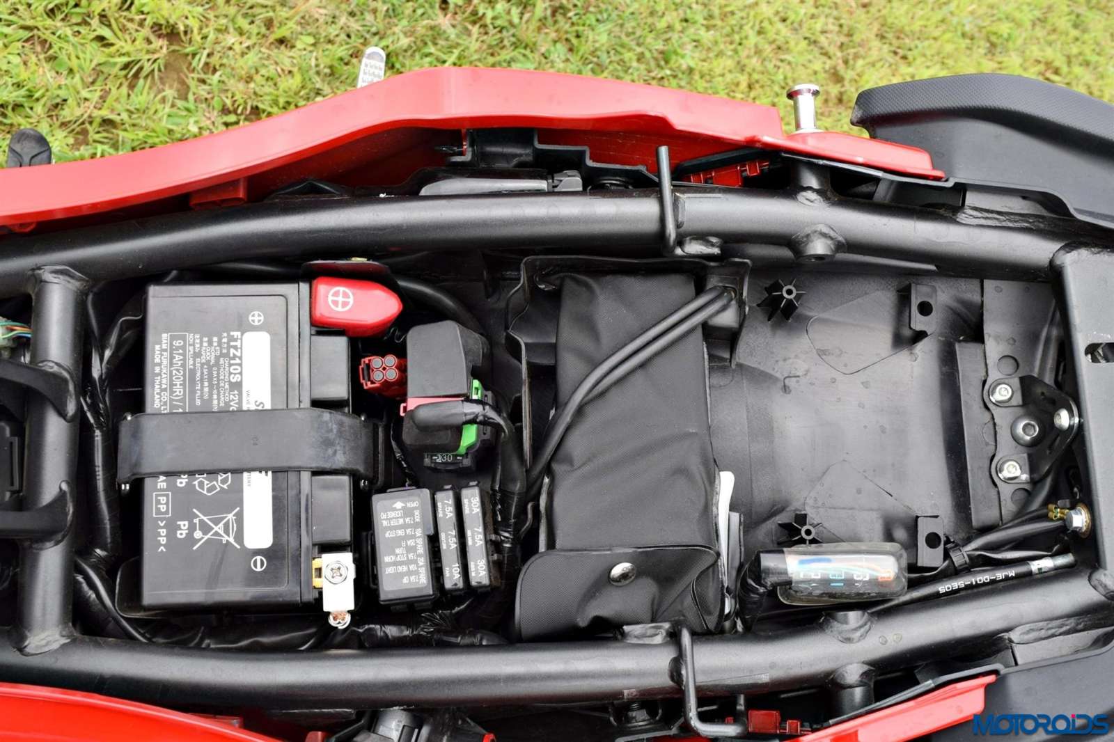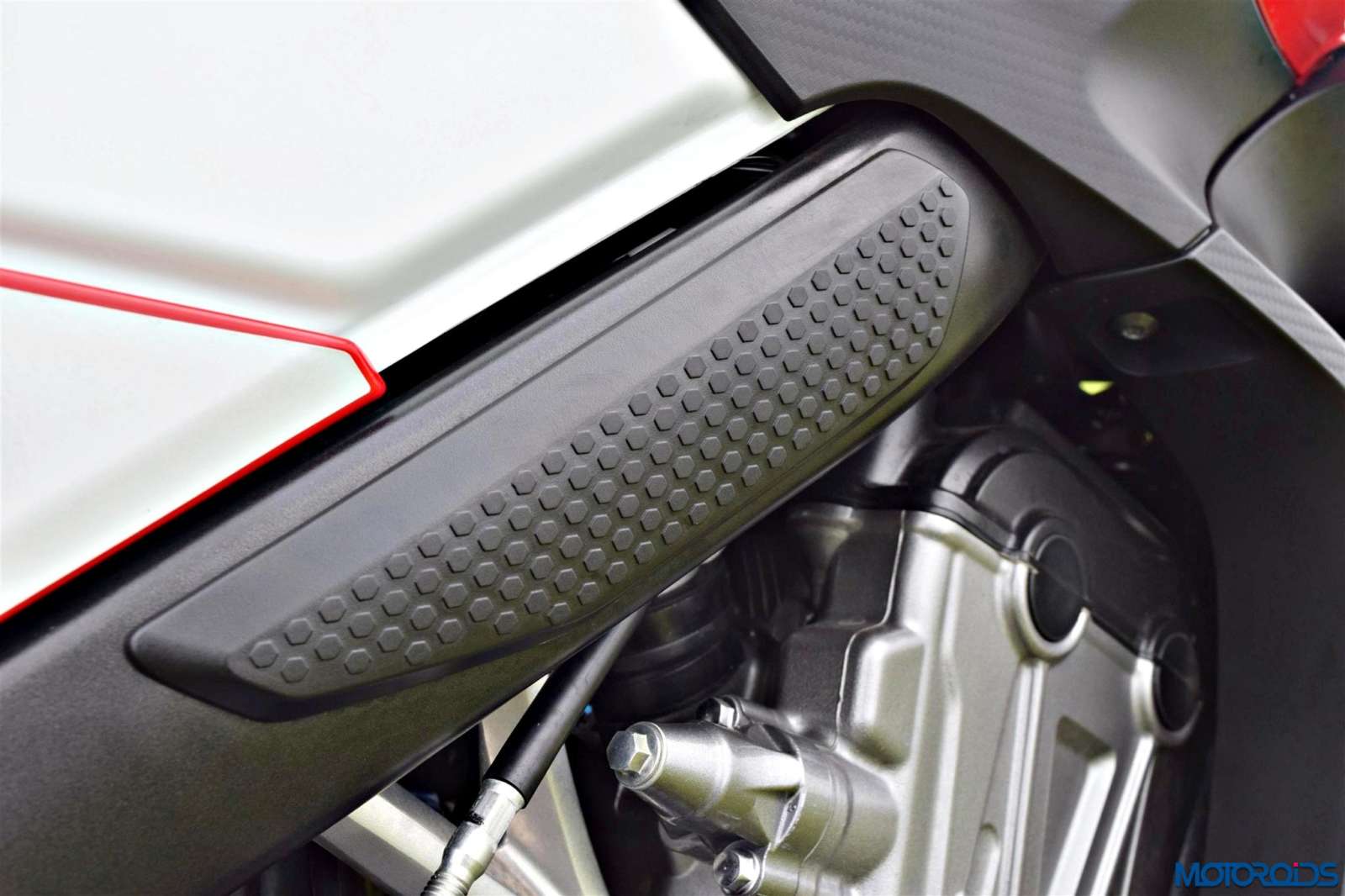 • Rubber pads on the chassis work as a traction kit offering hold to the rider during spirited riding and under heavy braking. Also acts as a heat shield to the rider’s legs preventing direct contact onto the chassis.