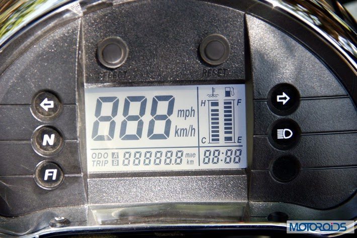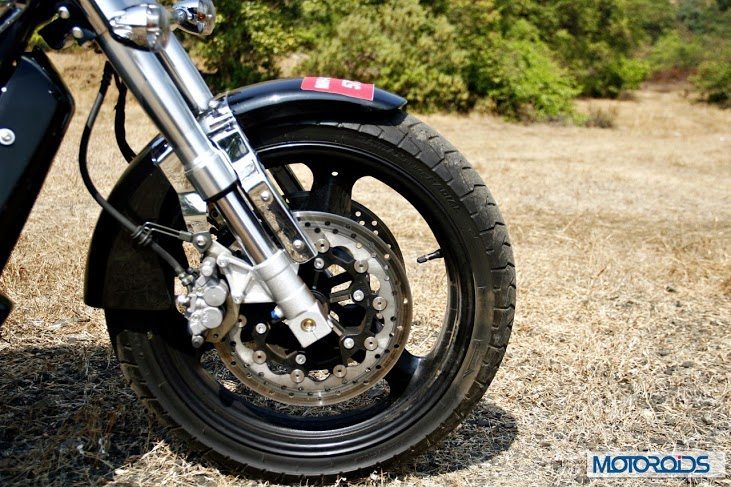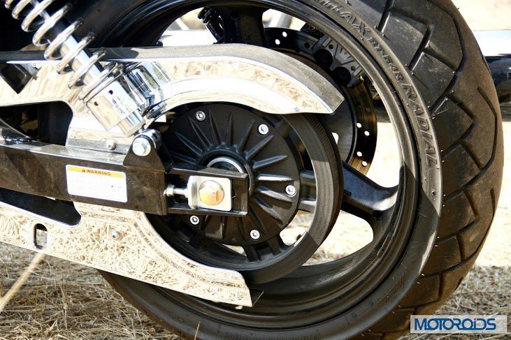 The bazooka-clone exhaust though overly sized for the motorcycle makes for an imposing feature. A set of sticky Bridgestone Battlax rubber at both ends add merit on the impressive features list and finally an arched LED tail light cluster gives the Aquila Pro a Yamaha V-Max’ish look.