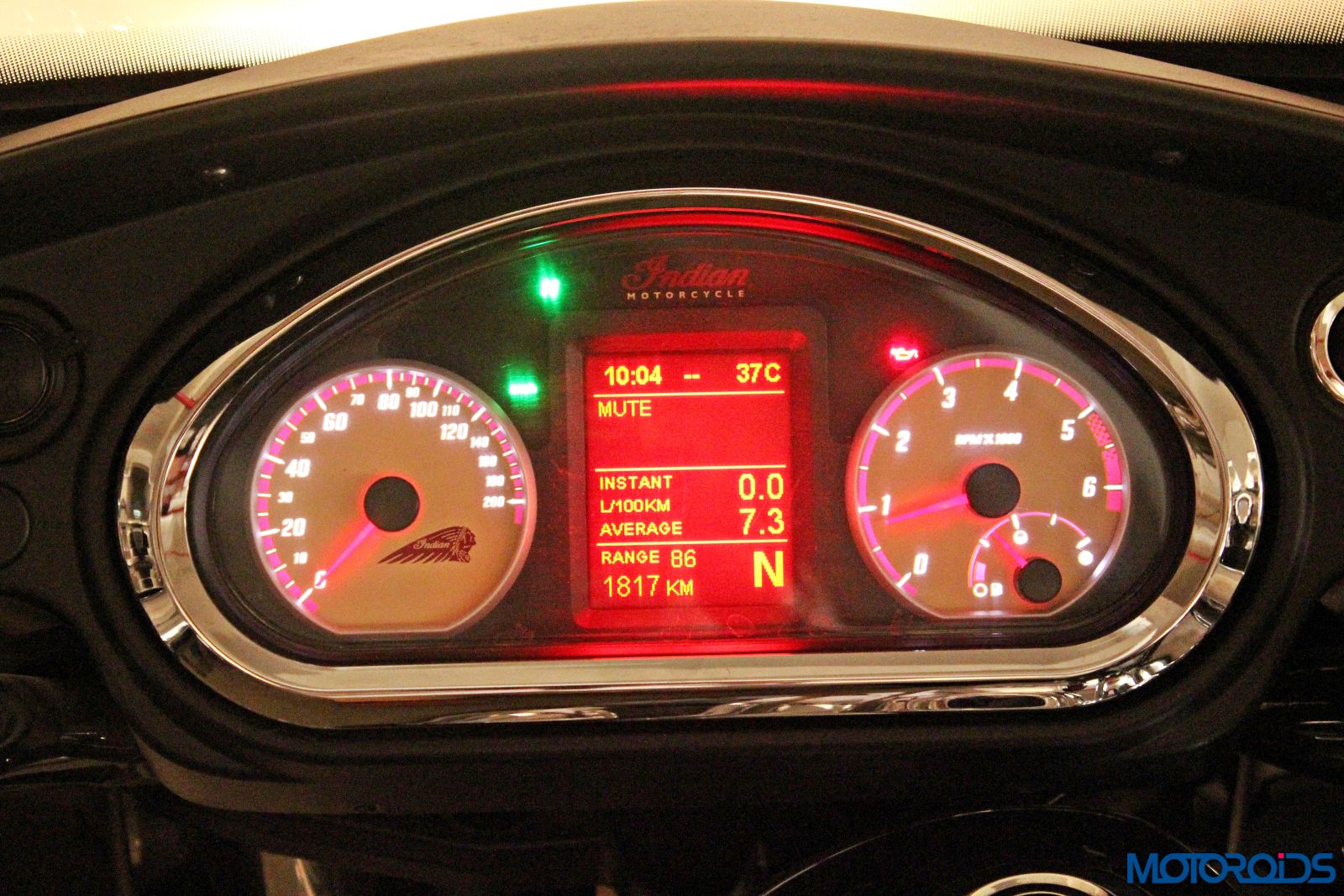 Once on the saddle, what occupies prime space below the windscreen is an instrument cluster that wouldn’t look out of place on a four wheeled parallel to the Chieftain. It is a modern unit that incorporates a digital display flanked by analogue dials for the speedometer, engine speed and fuel gauge on either sides. The digital display reads out a gamut of information that includes, speed, engine revolutions, distance to empty, twin tripmeters, instantaneous and average fuel economy, gear position display, outside temperature, tire pressure, engine hours of operation, engine oil life percentage, average speed, battery voltage, radio information, vehicle trouble code and when you forget to strap that Speedmaster around your wrist, the time. The space above that trio is occupied by tell-tale lights for ABS, Cruise control and every other modern bit that’s neatly tucked under this UNESCO world heritage site on wheels.