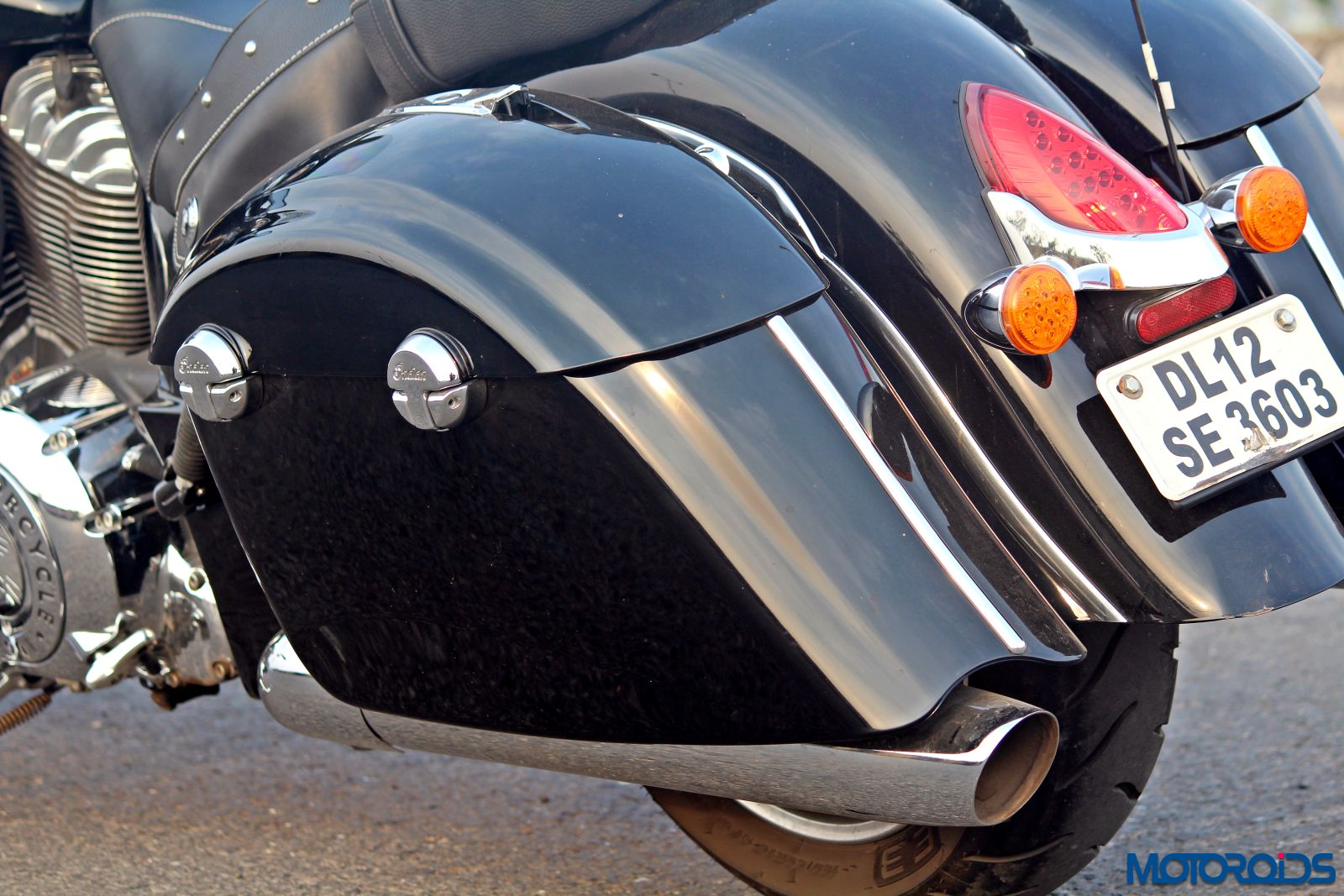 Unlike the aged leather that comes with the Chief Vintage, the Chieftain gets hard fiber panniers that can swallow quite a good amount of luggage and are remotely lockable via the key fob or the switch on the tank. Every other bit is similar on both bikes, except that the Indian Chieftain also comes with an Antenna that could break if the pillion carelessly swings his/her foot over, like it did on our test bike. Just for the record – we didn’t break it. For those who appreciate the finer details in life, the quality of workmanship and finish of materials on this motorcycle is stratospheric. Every detail has a hammer and chisel tale it can narrate, while the entire execution makes you stop and stare in amazement.
