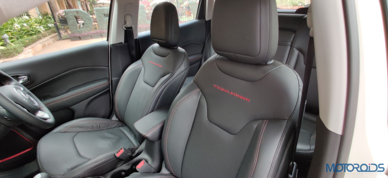Inside, the new Trailhawk gets a more premium cabin when compared with the standard Compass. Despite being a premium offering and one of the most expensive vehicles in its segment, the Compass does not provide electrically adjustable seats or lumbar support which may be a disappointment for some customers who are willing to shell out a lot of money for this car. However, the Trailhawk does cover up when it comes to the quality of the dashboard and other comfort factors of the car. The car also gets many Rubicon Red inserts to act as a contrasting colour to the all-black interior of the car. In terms of storage spaces, the Compass Trailhawk gets a lot of storage pockets and cup-holders too.