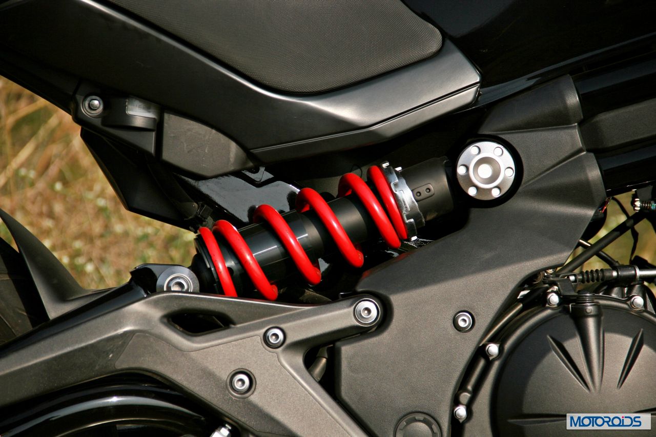 Neatly tucked away exhaust canister; one of the key elements that help centralize the ER-6n’s mass for improved dynamics.