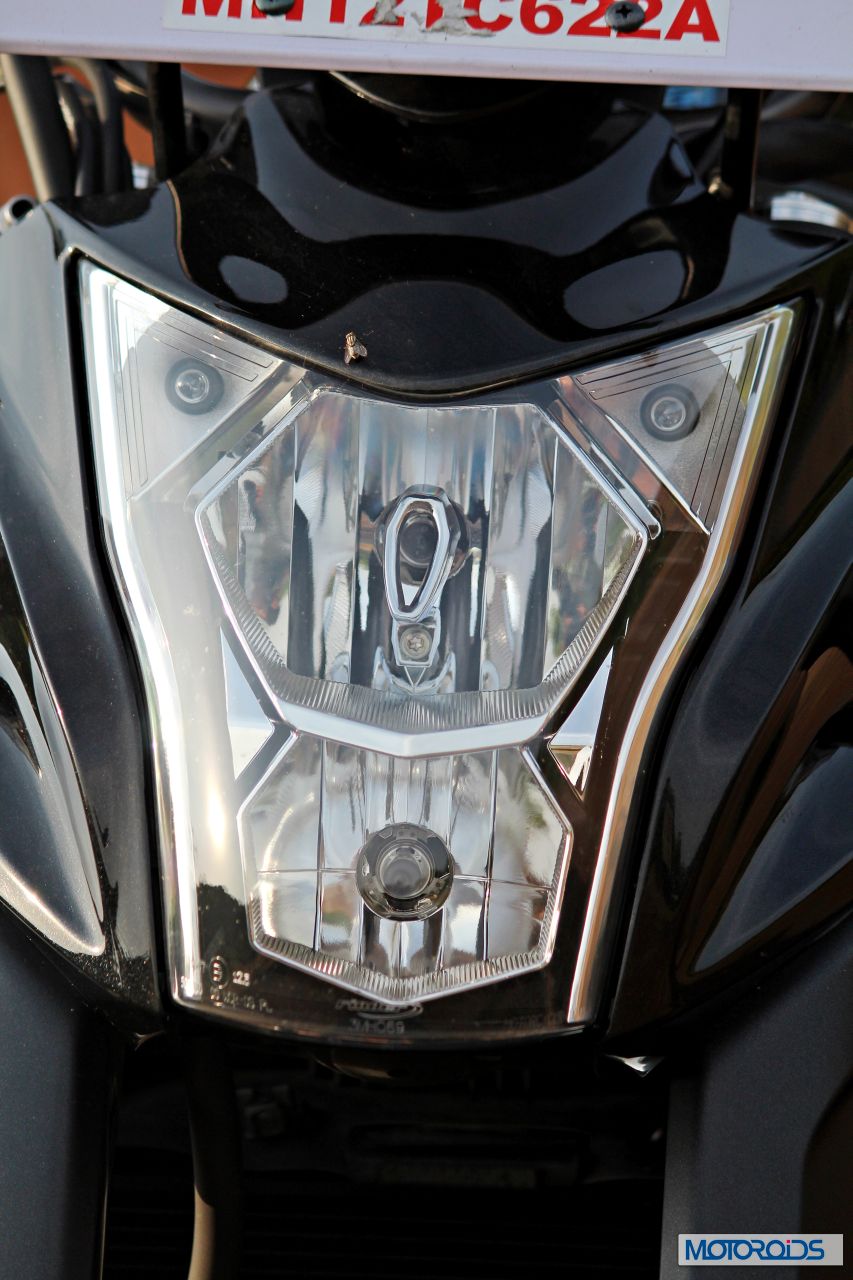 With the bikini fairing comes the swept back, long head lamp which looks the part, and is a daytime running unit as well.